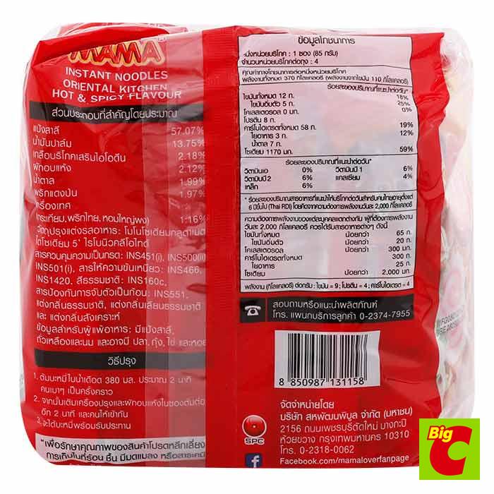 มาม่า ออเรียนทัลคิตเชน บะหมี่กึ่งสำเร็จรูป รสออตแอนด์สไปซี่ 80 กรัม แพ็ค 4