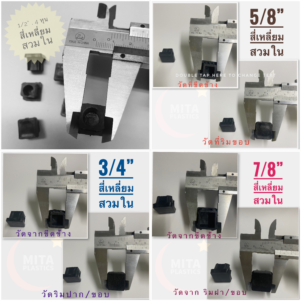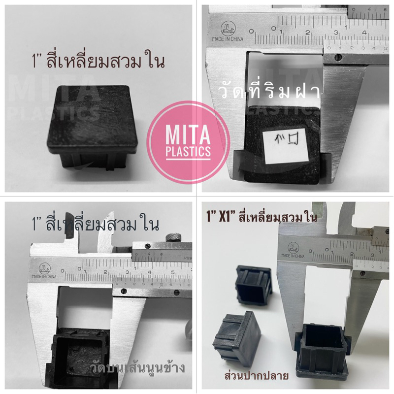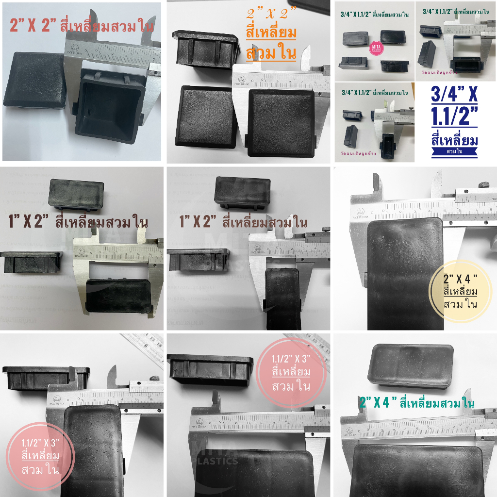 ... ห้เลือกวัตถุดิบพลาสติก เพราะ ถ้าเป็นยาง มีโอกาสหลุดจากขาบ่อย ไม่ยึดติดเท่าพลาสติก โดยเฉพาะ สวมใน เพราะใส่แล้ว จะยึดกับขาเก้าอี้ ขาโต๊ะ ขาตู้ได้ดีกว่ายาง *** *** กรุณาถ่ายวีดีโอขณะแกะสินค้า เพื่อใช้เป็นหลักฐานกรณีได้รับสินค้าไม่ครบ *** Note🍀 : ขนาดของสินค้าจริงอาจมีค่าคลาดเคลื่อนจากขนาดที่เรียก ~ +/- หนึ่งถึง สอง มิลลิเมตร ที่ต้องยอมรับ Note🍀 : The actual product may have a deviation from the size called ~ +/- one to two millimeters that must be accepted. หมายเหตุ/สำคัญ 🔔 - วัดเส้นผ่านศูนย์กลางเป็น มิลลิเมตร เพื่อความง่ายในการเทียบขนาด - *** กรุณาวัดขนาดขาเก้าอี้ หรือขาโต๊ะของท่าน ก่อนทำการสั่งซื้อ *** - ก่อนทำการสั่งซื้อ หากไม่มั่นใจวิธีการวัดขนาด ยินดีตอบแซท - ในกรณีที่ ลุกค้าต้องการสินค้าจำนวนมากกว่าที่ระบุในระบบ สามารถทักแชทได้ค่ะ ******* พลาสติก สี่เหลี่ยมสวมด้านใน ******* - ขนาด 1/2"x1/2" หรือ 4หุนx4หุน – ใช้กับรูขาเหล็ก 11.5 มม - ขนาด 5/8"x5/8" หรือ 5หุนx5หุน – ใช้กับรูขาเหล็ก 15 มม - ขนาด 3/4"x3/4" หรือ 6หุนx6หุน – ใช้กับรูขาเหล็ก 18มม - ขนาด 7/8"x7/8" หรือ 7หุนx7หุน – ใช้กับรูขาเหล็ก 21 มม - ขนาด 1"x1" หรือ 1นิ้วx1นิ้ว – ใช้กับรูขาเหล็ก. 24 มม - ขนาด 1-1/4"x1-1/4" หรือ 1นิ้ว2หุนx1นิ้ว2หุน – ใช้กับรูขาเหล็ก 30.5มม - ขนาด 1-1/2"x1-1/2" หรือ 1นิ้ว4หุนx1นิ้ว4หุน – ใช้กับรูขาเหล็ก 37 มม - ขนาด 1-3/4"x1-3/4" หรือ 1นิ้ว6หุนx1นิ้ว6หุน – ใช้กับรูขาเหล็ก 42มม - ขนาด 2"x2" หรือ 2นิ้วx2นิ้ว – ใช้กับรูขาเหล็ก. 48 มม - ขนาด ¾” x 1.1/2” หรือ 6 หุน x1นิ้ว 4 หุน – ใช้กับรูขาเหล็ก 18 x 36.5 มม - ขนาด 2"x1" หรือ 2นิ้วx1นิ้ว – ใช้กับรูขาเหล็ก 24 x 49 มม - ขนาด 1-1/2"x3" หรือ 1นิ้ว4หุนx3นิ้ว – ใช้กับรูขาเหล็ก 35 x7 3 มม - ขนาด 2 "x 4 " หรือ 2 นิ้วx 4 นิ้ว - ใช้กับรูขาเหล็ก. 48 x 97มม Note🍀 : ขนาดของสินค้าจริงอาจมีค่าคลาดเคลื่อนจากขนาดที่เรียก ~ +/- หนึ่งถึง สอง มม ที่ต้องยอมรับ *** มีขายแบบยกกระสอบ รบกวน ข้อความได้คะ *** #ยางรองขาเก้าอี้ #พลาสติกรองขาเก้าอี้#จุกอุดขาโต๊ะ#ปลอก #จุกยาง#อะไหล่เฟอนิเจอร์#พลาสติก #ยาง #ที่รองขาเก้าอี้ #เฟอร์นิเจอร์ #โต๊ะทำงาน #เก้าอี้พักคอยเก้าอี้แถว #ตกแต่งบ้าน #อะไหล่แต่ง #โซฟา #อะไหล่ #พลาสติกปิดเหล็กกล่อง #ลูกยางรองขาโต๊ะ #จุกอุดเหล็กกล่อง