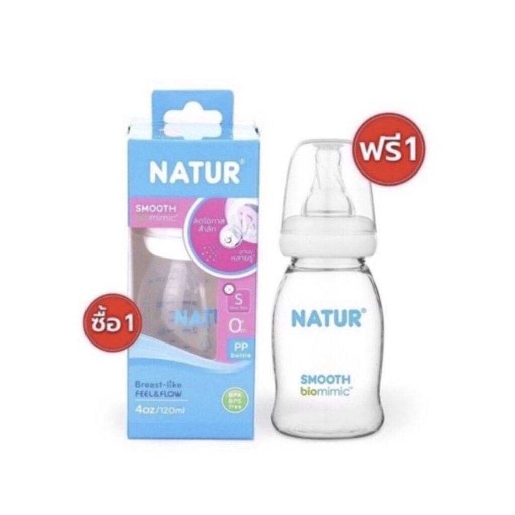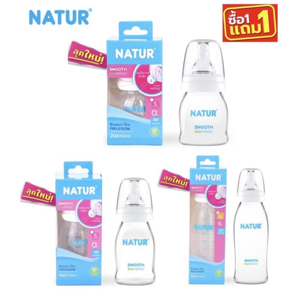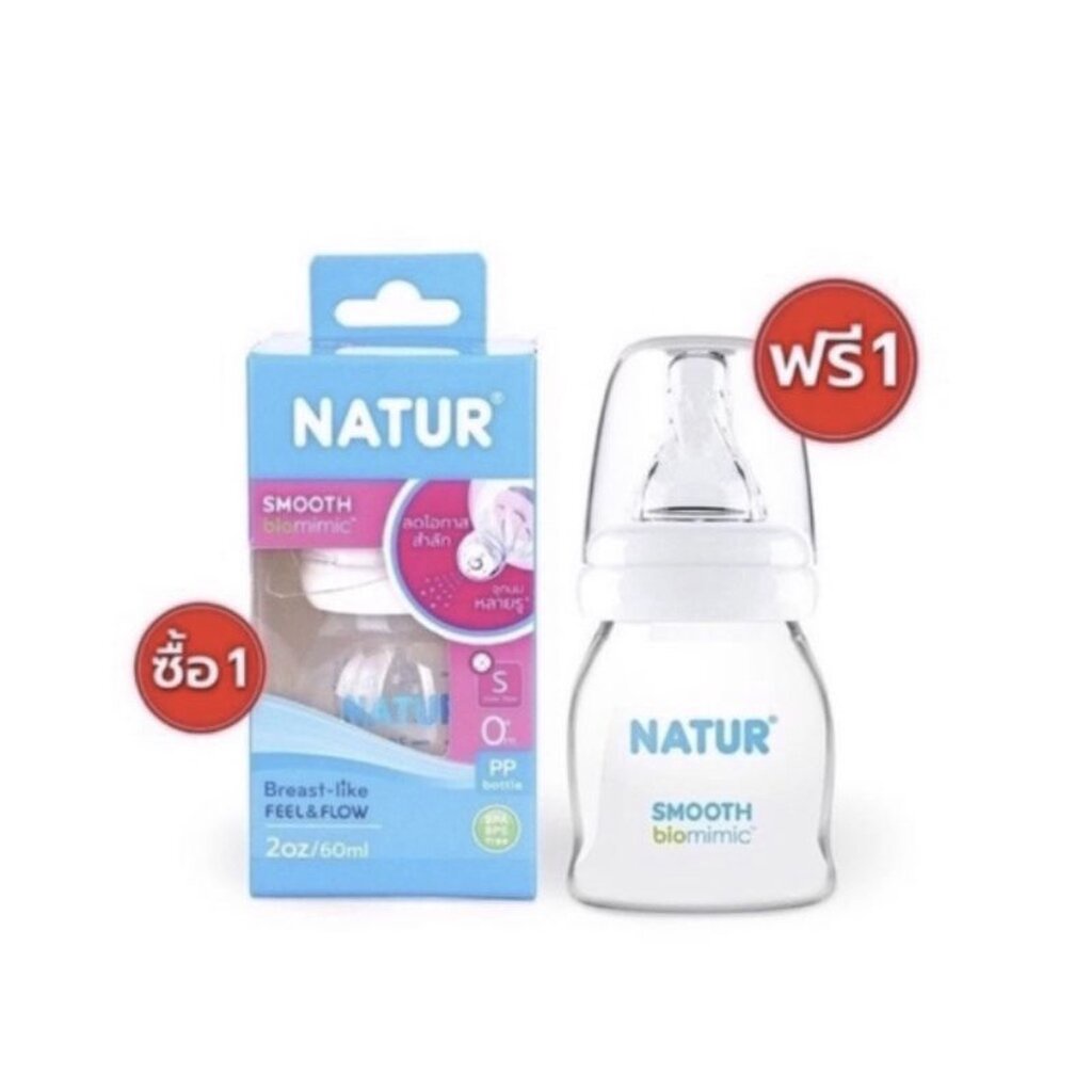 [Kidmineshop] Natur เนเจอร์ ขวดนมคอแคบ สมูทไบโอมิมิค ขนาด ( 2oz/4oz/8oz ) 1แถม1 โฉมใหม่