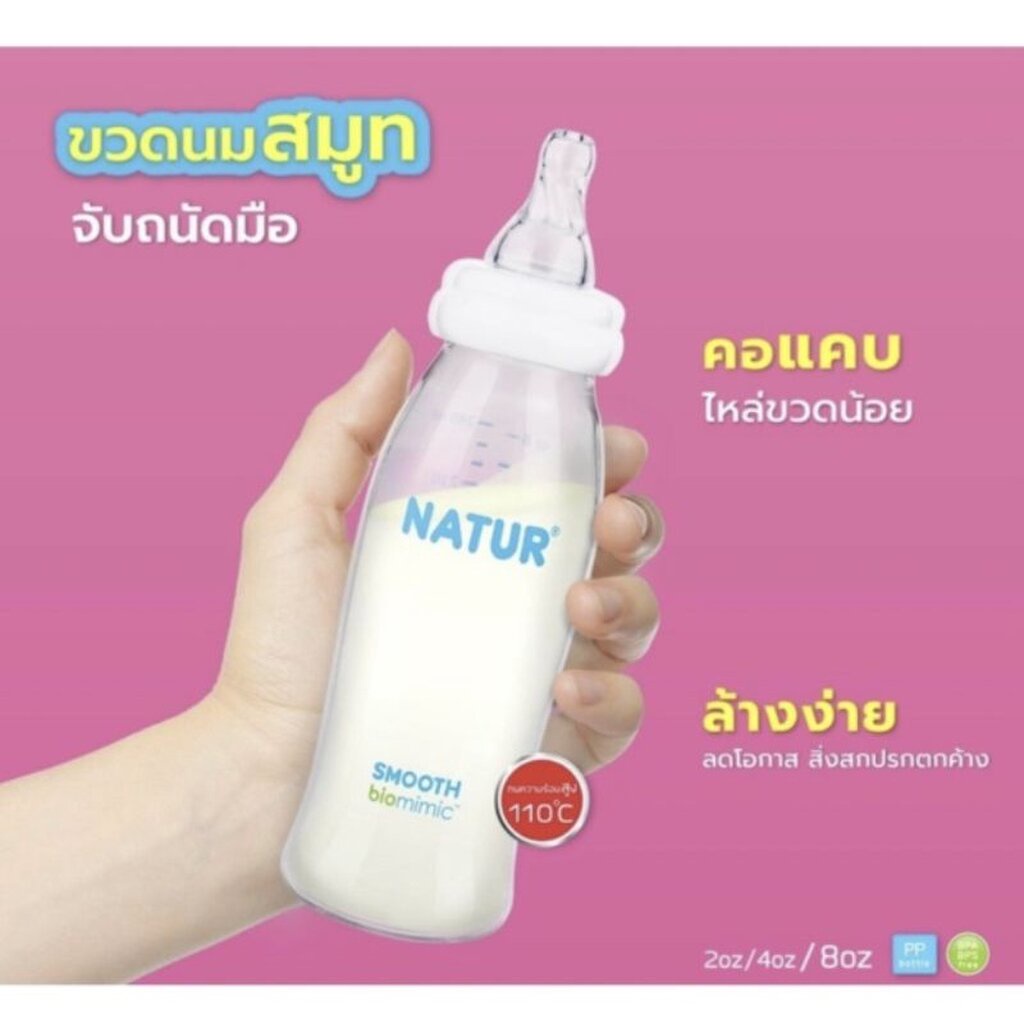 เนเจอร์. ลุคใหม่! เนเจอร์ขวดนมคอแคบสมูทไบโอมิมิค 2oz /4oz/8oz แพ็กเกจสินค้า: กล่องเปิดหน้าต่าง มาพร้อมกับจุกนมคอแคบสมุทไบโอมิมิคไซซ์ S (Slow flow 4 รู) เหมาะสำหรับเด็ก 0+ เดือนขึ้นไปจุกนมหลายรู * เสมือนดูดจากอกแม่ลูกน้อยควบคุมการไหลของน้ำนมได้ด้วยตัวเองดูดมากได้น้ำนมมากดูดน้อยได้น้ำนมน้อยลดโอกาส