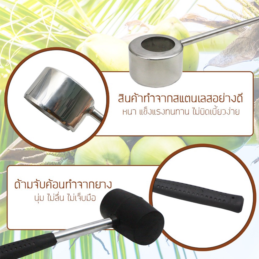 ที่เปิดมะพร้าว ที่เจาะมะพร้าว สแตนเลสพร้อมค้อนทุบ อุปกรณ์เจาะมะพร้าว Tham coffee