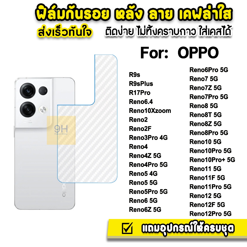 🔥 ฟิล์มหลัง เคฟล่า รุ่น OPPO Reno 12 Pro Rene11 Reno10Pro + Reno8T Reno8 Reno7 Reno6 Reno5 Reno4 ฟิล์มoppo ฟิล์มกันรอย