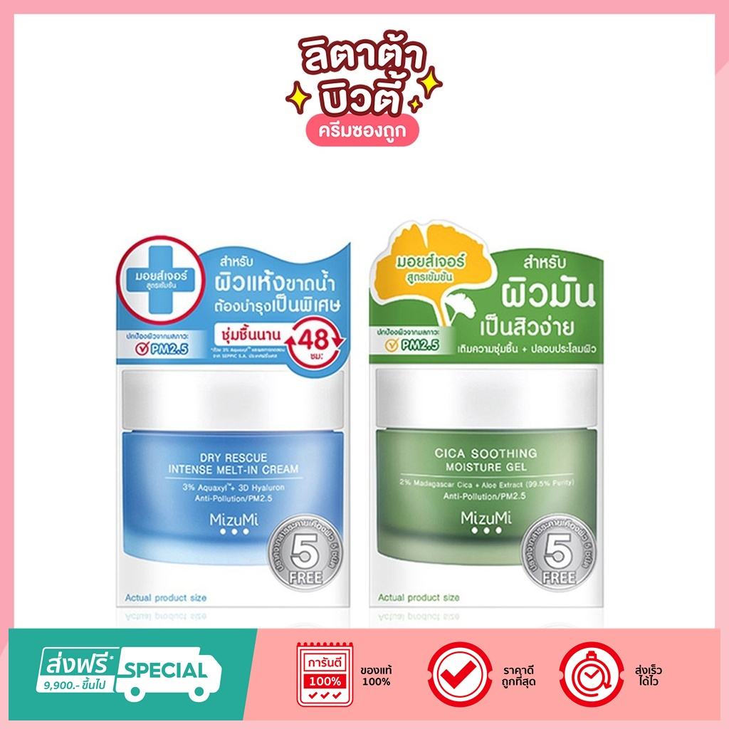 มิซึมิ MizuMi Dry Rescue Intense Melt-In Cream / MizuMi Cica Soothing Moisture Gel กระปุก 45 มล.
