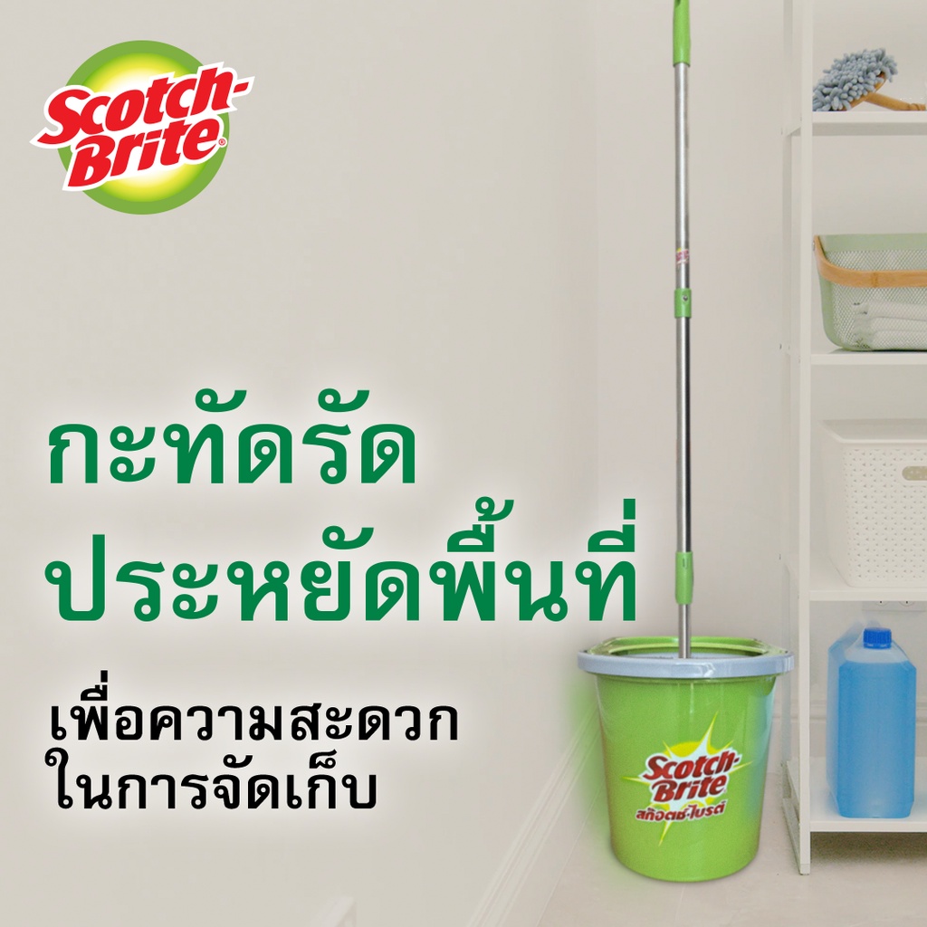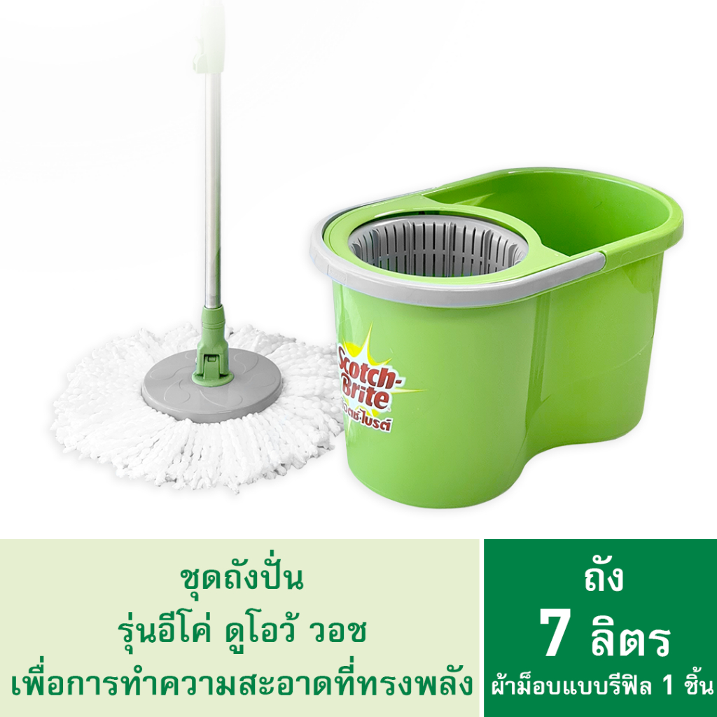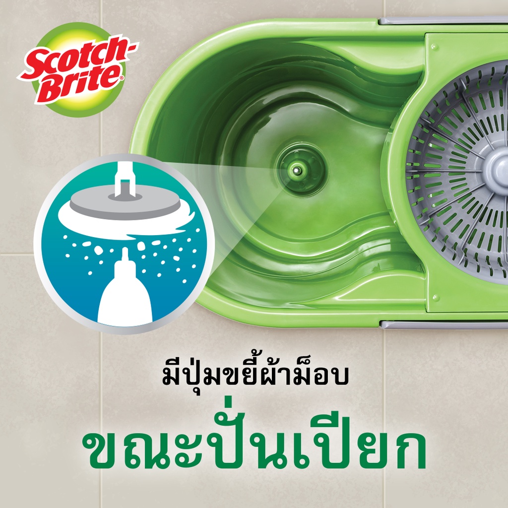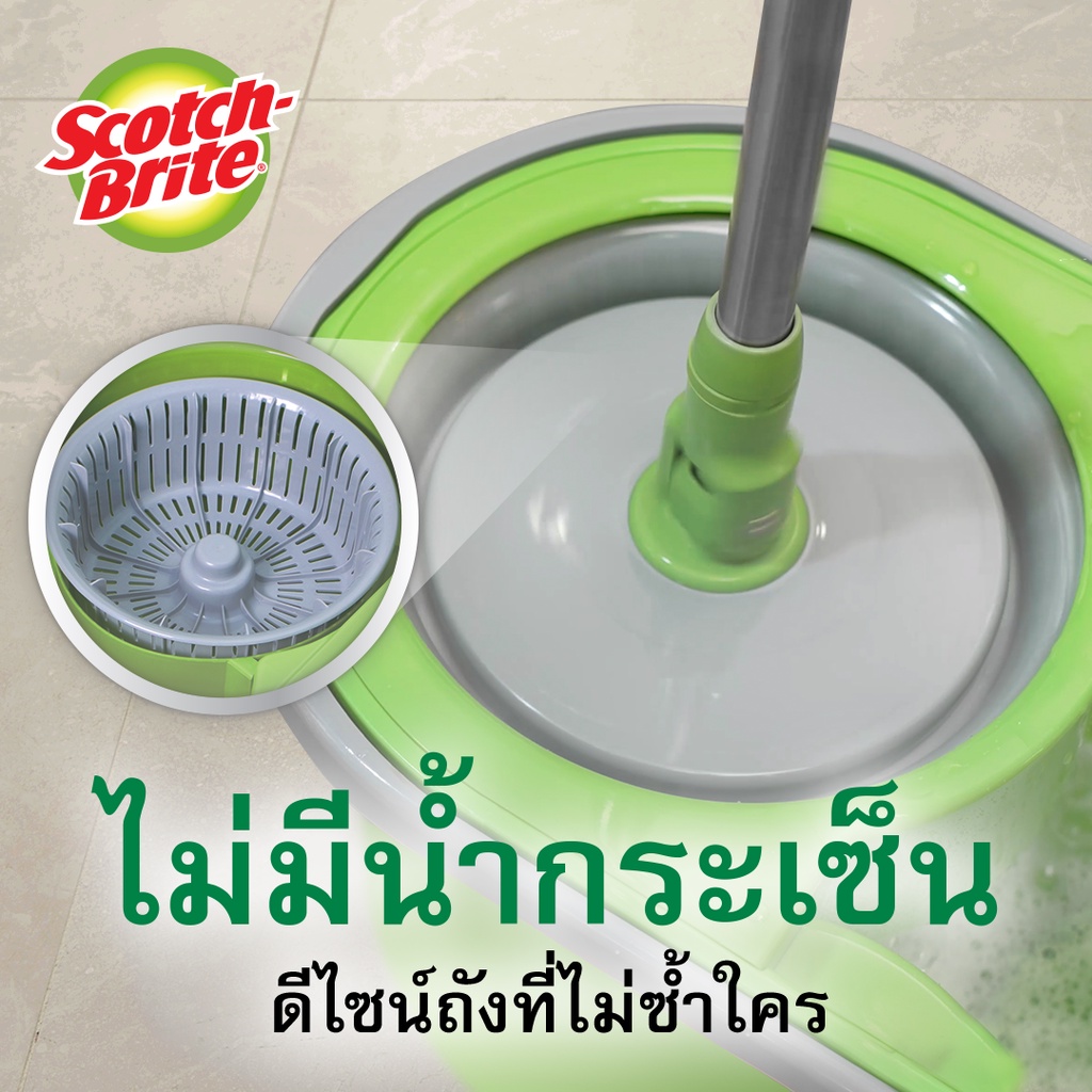 Scotch-Brite® Eco DuaL Wash Spin Mop Bucket (ไม้ถูพื้น 3M, ถังปั่น3M, ไม้ถูพื้น 3M ไมโครไฟเบอร์) สก๊อตซ์-ไบรต์® ถังปั่นอีโค่ดูโอ้ววอช พร้อมชุดไม้ถูพื้นไมโครไฟเบอร์ สามารถปั่นเปียก และปั่นแห้งได้จบในถังใบเดียว เพิ่มขอบกันน้ำกระเด็นขณะปั่นแห้ง เพิ่มปุ่มปั่นซักสามารถช่วยขจัดสิ่งสกปรกขนาดเล็กใต้