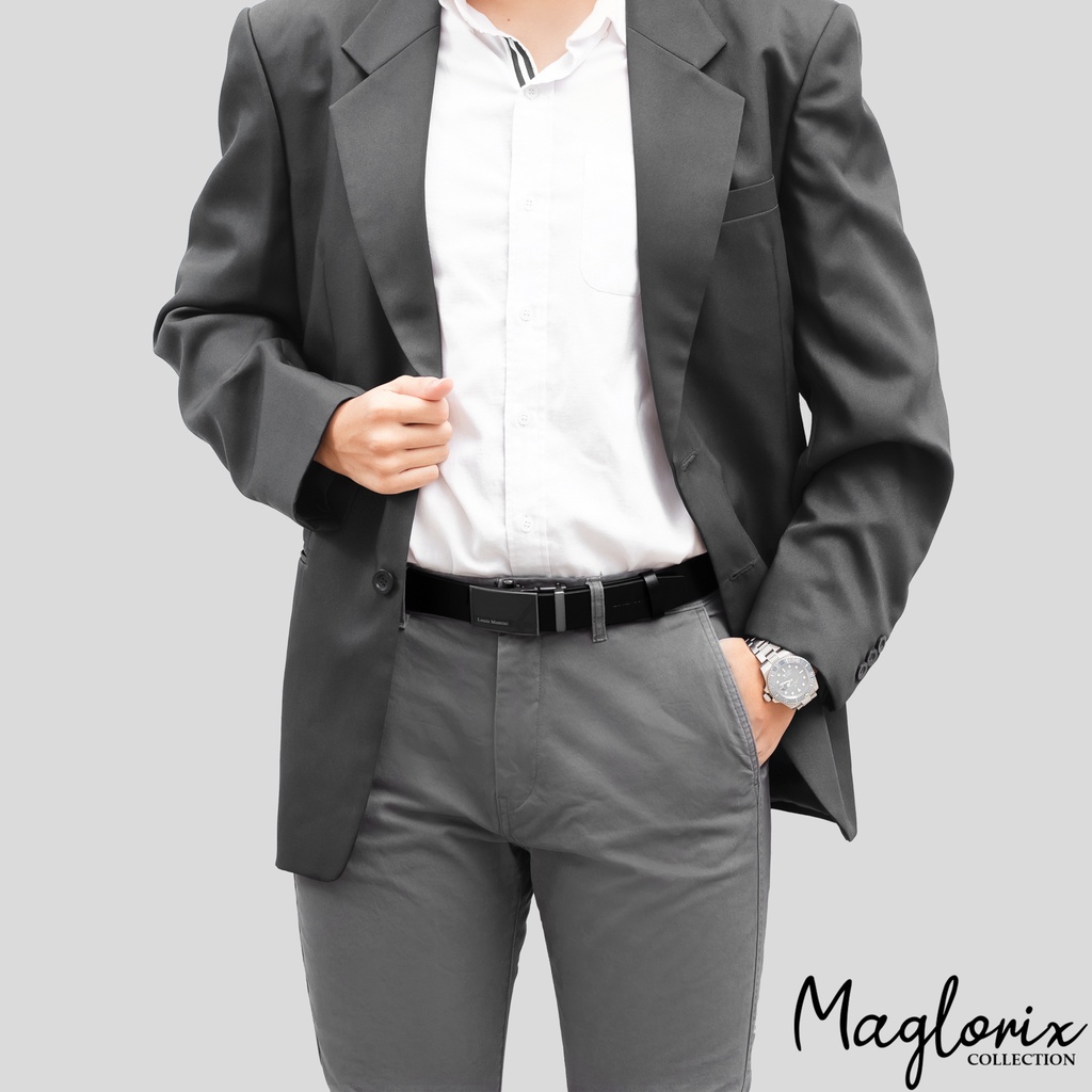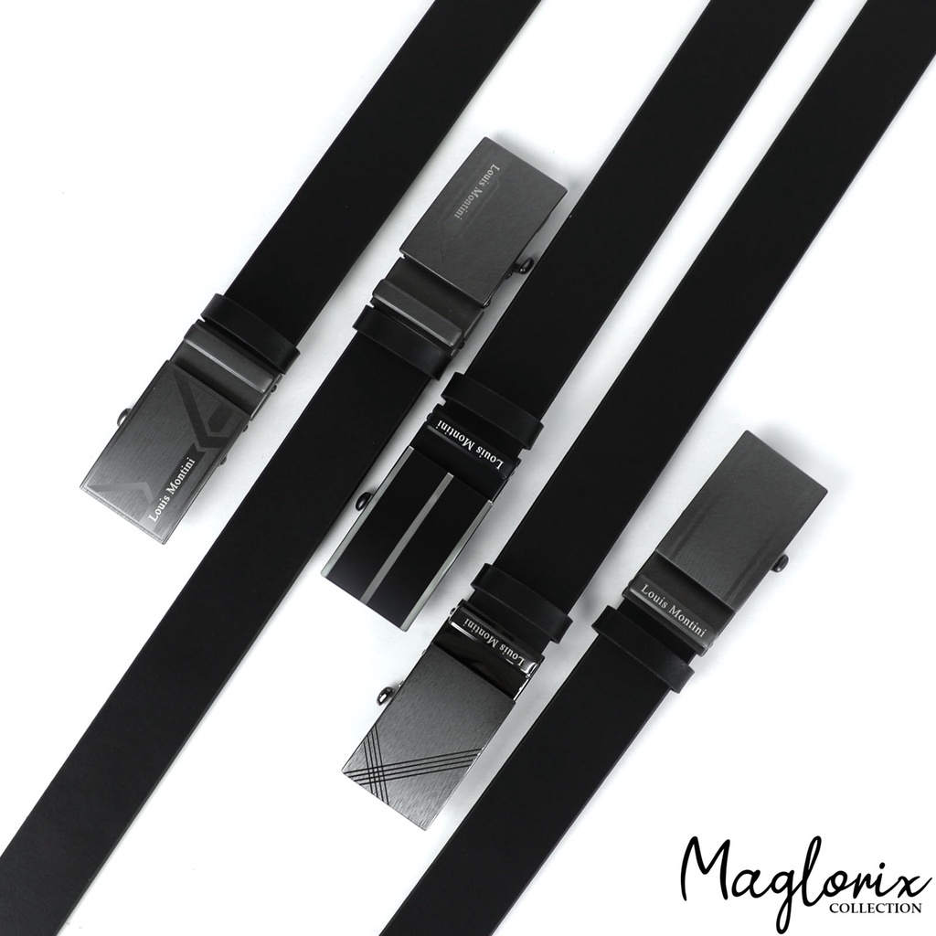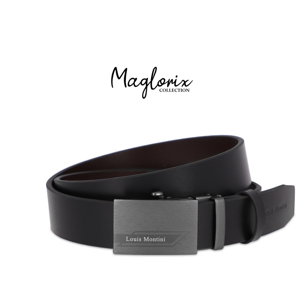 Louis Montini Automatic เข็มขัดหนังวัวแท้ หัวออโต้เมติค เข็มขัดหนังแท้ หนังเรียบ MGN369