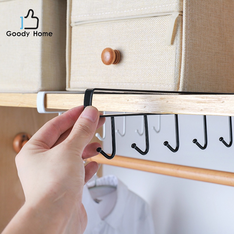 Goody Home ที่แขวนถ้วยหรือของใช้อเนกประสงค์ ไม่ต้องเจาะผนัง เพียงแขวนเสียบกับฐานชั้นของตู้ครัว ตู้แขวนลอย