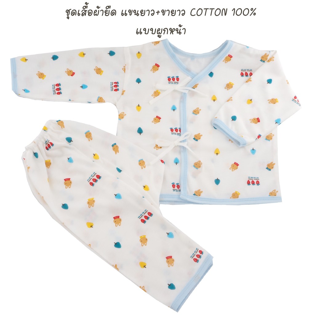 Natty punn ชุดเสื้อผ้ายืด แขนยาว + ขายาว COTTON 100% ชุดเด็กอ่อนแรกเกิดรุ่นผูกหน้า เสื้อแขนยาวกางเกงขายาว ผลิตจากผ้ายืด COTTON 100% ผ้านุ่ม สวมใส่สบาย ไม่ร้อน ระบายอากาศได้ดี ไม่ระคายเคืองผิวเด็กทารก ผลิตจากผ้าฝ้าย 100% เหมาะสำหรับเด็กแรกเกิด - 6เดือน