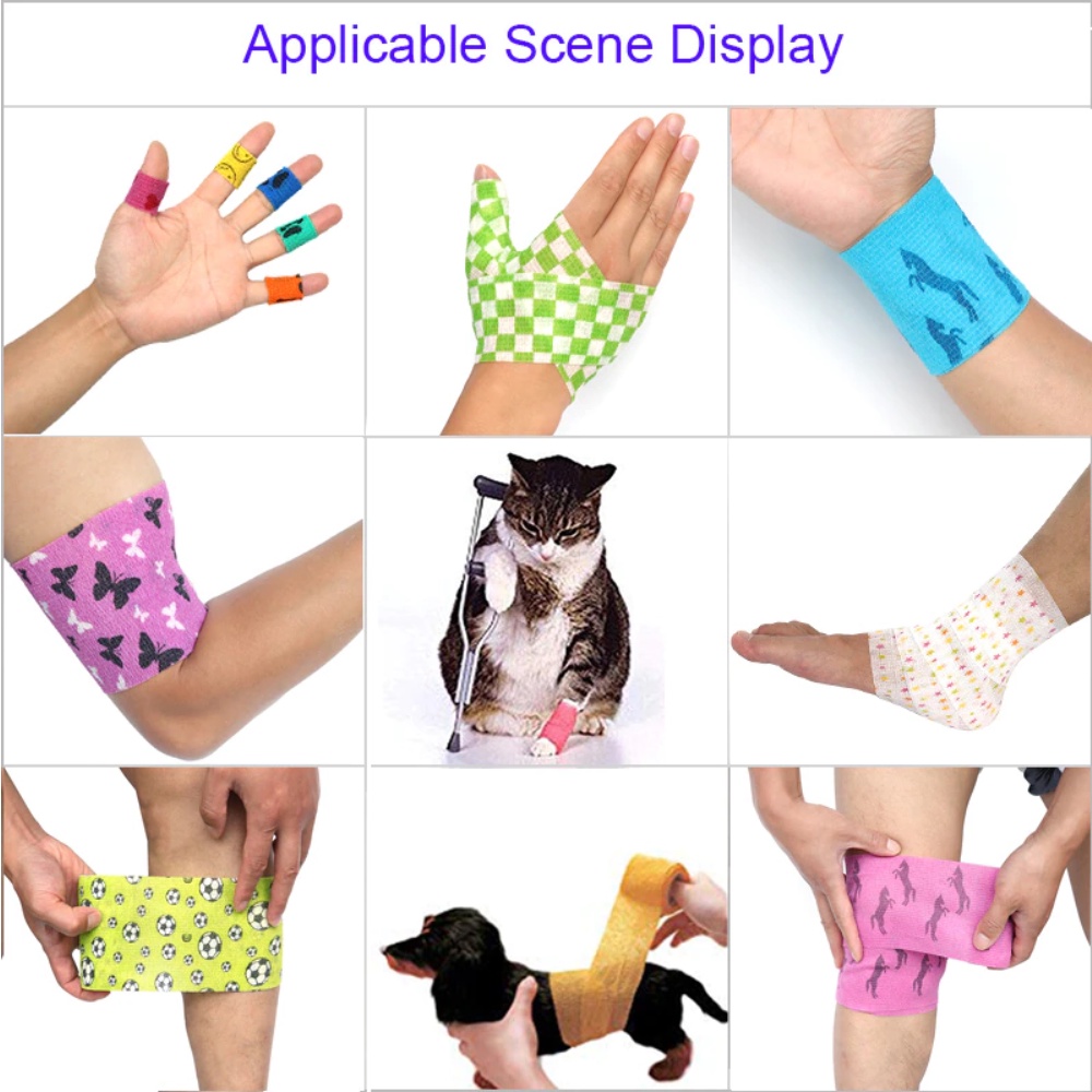 รายละเอียดสินค้า - ใช้สำหรับพันเพื่อกระชับกล้ามเนื้อ - ช่วยบรรเทาอาการเคล็ด ช้ำ บวม หรือพยุง เพื่อลดการเคลื่อนไหว - ป้องกันอาการบาดเจ็บที่เกิดจากการเล่นกีฬาหรือการใช้งานของข้อต่อ หรือส่วนต่างๆที่มากกว่าปกติ - ใช้สำหรับพันแผลสัตว์เลี้ยงเพื่อป้องกันการเลียแผล เพื่อความสวยงาม เป็นที่นิยมใช้กันในคลิ