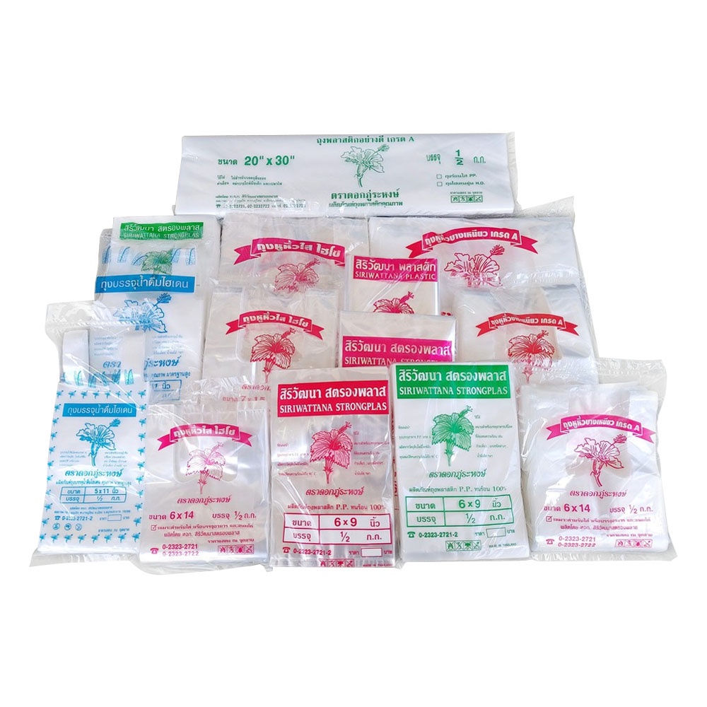 [เก็บโค้ดส่งฟรีหน้าร้าน]ถุงร้อนใส P.P. เกรด A เหมาะสำหรับบรรจุอาหารบริโภค จำนวน 1/2 kg. (500g) 19 ขนาด