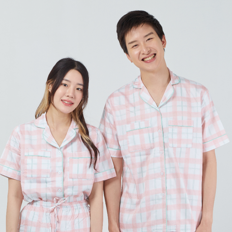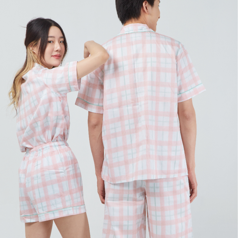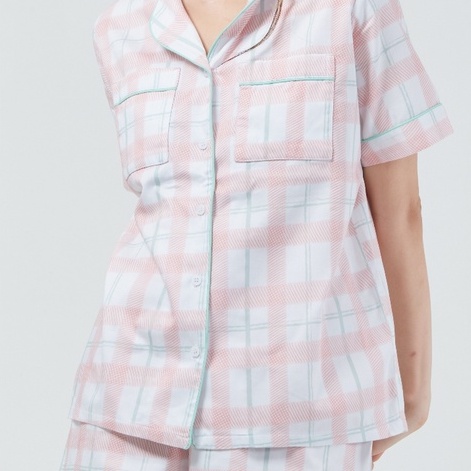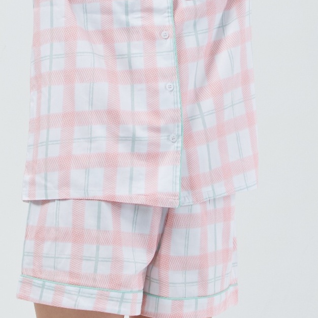 ชุดนอน sliptosleep -Salmon Grids Shorts Set