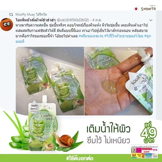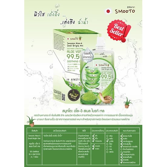 [ 1 ซอง ] สมูทโตะ อโล-อี สเนล ไบรท์ เจล Smooto Aloe-E Snail Bright Gel 50 กรัม