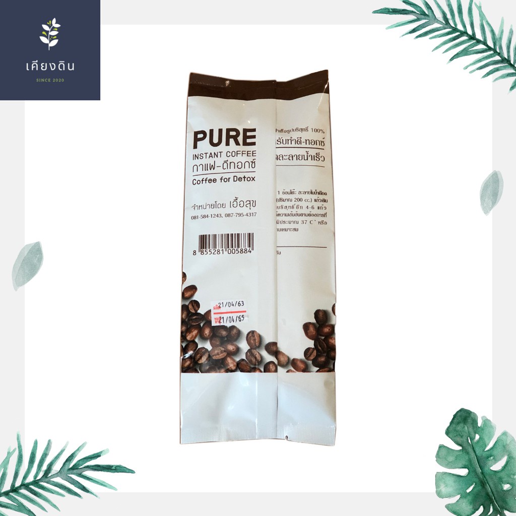 กาแฟดีท็อกซ์ (PURE) กาแฟสำเร็จรูปบริสุทธิ์ 100% สำหรับทำดีทอกซ์ ชนิดละลายน้ำเร็ว 200 กรัม วิธีใช้ : ใช้กาแฟ 1 ช้อนโต๊ะ ละลายในน้ำเดือด 1 แก้ว(200 ซีซี) แล้วเติมน้ำเย็นบริสุทธิ์อีก 4-6 แก้ว เพื่อให้ได้ความเข้มข้นตามต้องการ ที่อุณหภูมิประมาณ 37 องศา หรือตามความเหมาะสม น้ำหนักสุทธิ : 200 กรัม
