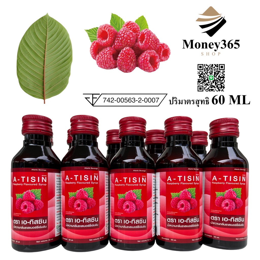 A-TISIN (เอ-ทิสซิน)น้ำหวานเข้มข้นกลิ่นราสเบอร์รี่ ปริมาณ 60 ml บรรจุ 10 ขวด ชนิดน้ำเข้มข้น ผสมได้เยอะใช้ผสมเครื่องดื่มได้ทุกชนิดให้ความหวานกลมกล่อม อย่างเป็นธรรมชาติรสชาติอร่อย สดชื่นคลายร้อนผสมน้ำ 1 ส่วน ต่อน้ำ 6 ส่วน อ.ย.74-2-00563-2-0007 !! แถมฟรี ปากกา สีน้ำเงินคละสี จำนวน 1 ด้าม (มูล