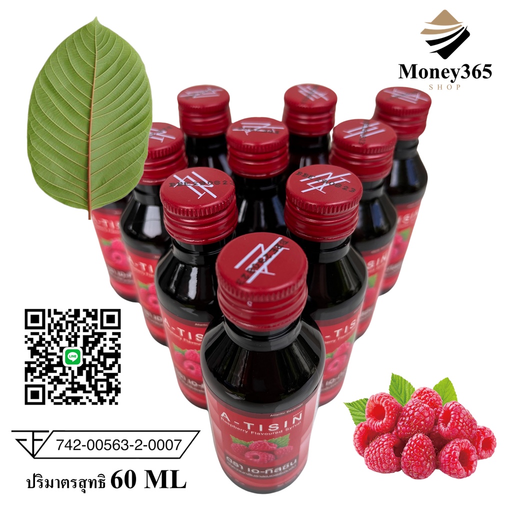 (ค่าส่งถูก + ถูกสุด)แพค 10 ขวด !! A-TISIN (เอ-ทิสซิน) น้ำหวานเข้มข้นกลิ่นราสเบอร์รี่ ปริมาณ 60 ml !! ฟรี ปากกา 1 ด้าม
