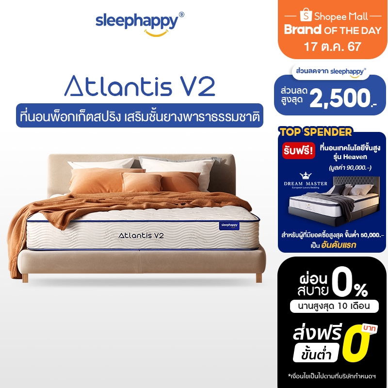 [ส่งฟรี] SleepHappy ที่นอนพ็อกเก็ตสปริง เสริมยางพาราธรรมชาติแท้ 100% รุ่น Atlantis V2 และรุ่น Atlantis V2 Latex