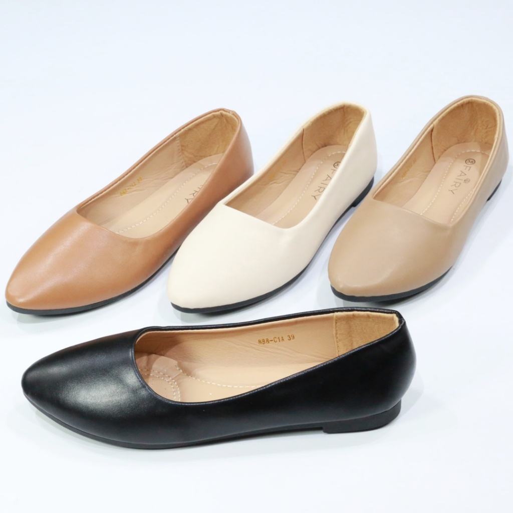 รองเท้าส้นแบน 888-C1A รองเท้าคัชชู หนังด้าน FAIRY