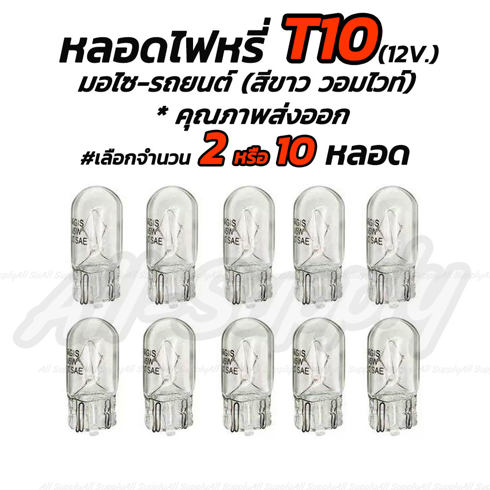 โปรลดพิเศษ หลอดไฟ T10 12V 5W T10 สีขาว(วอมไวท์) #เลือกจำนวน 2ชิ้น หรือ 10ชิ้น มอเตอร์ไซค์ รถยนต์ ไฟหรี่/ หลอดไฟหรี่/ ไฟส่องป้าย/ ไฟส่องป้ายทะเบียน/ หลอดไฟส่องป้ายทะเบียน/ หลอดไฟรถยนต์/ หลอดไฟมอเตอร์ไซค์ ไฟมอไซค์ ไฟรถยนต์ สำหรับมอเตอร์ไซค์ - ไฟไมล์ และไฟหรี่ สำหรับรถยนต์ - ไฟส่องป้าย ไฟห้องโดยสา