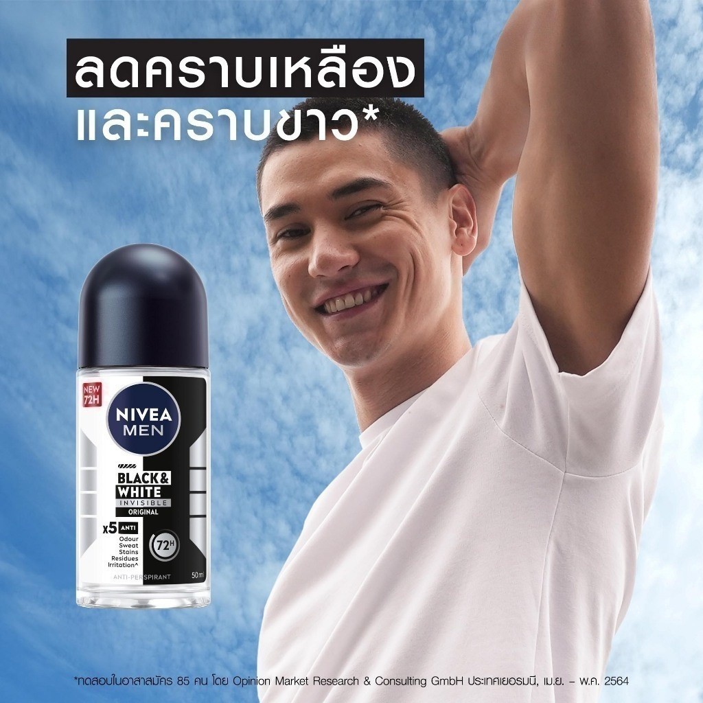 [ส่งฟรี+โค้ดลด 10%] นีเวีย เมน แบล็ค แอนด์ ไวท์ โรลออน ระงับกลิ่นกาย สำหรับผู้ชาย 50 มล. NIVEA