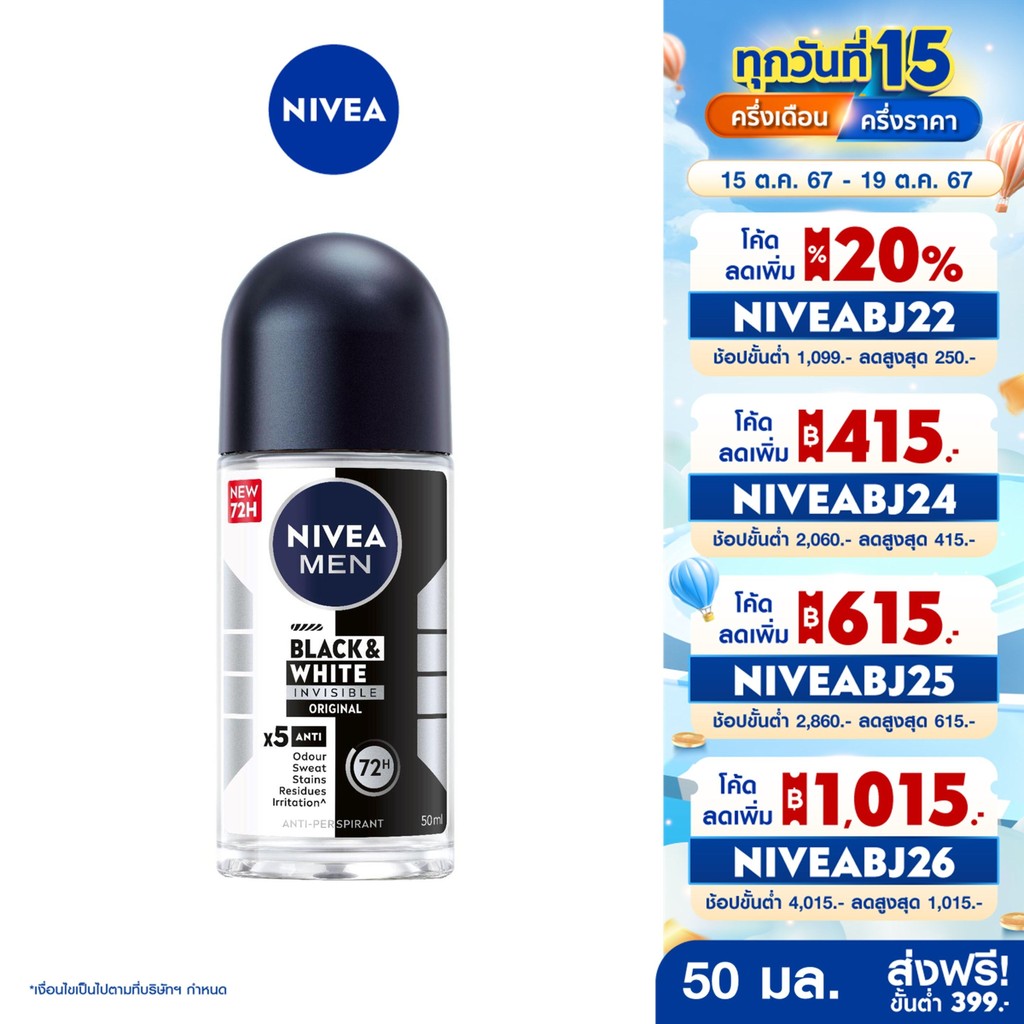 *หากได้รับสินค้าที่มีการชำรุด/เสียหาย กรุณาทำการกดคืนสินค้า และคืนเงินผ่านทางระบบ Shopee ภายใน 15 วัน นีเวีย เมน แบล็ค แอนด์ ไวท์ โรลออน 50มล. NIVEA MEN BLACK AND WHITE INVISIBLE ROLL ON 50 ML