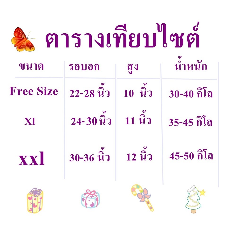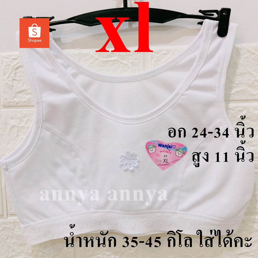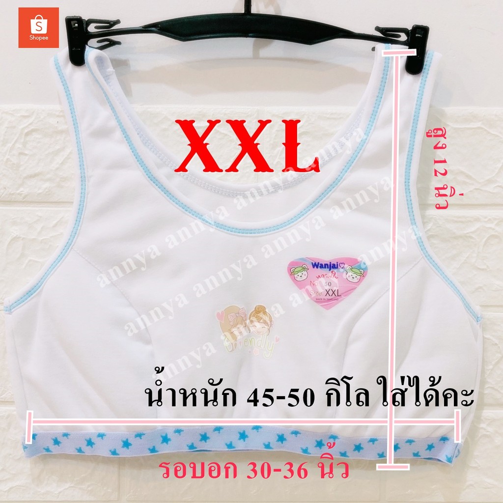 ... -45 ใส่ได้คะ xxl หน้าผ้า 30 นิ้ว ยืดได้ 30-36 คะ น้ำหนัก ประมาน 45-50 ใส่ได้คะ *** มีลายการ์ตูนนะคะ แบบสวม เสื้อในเด็ก เสื้อในวัยรุ่น เริ่มเป็นสาว มีบังทรง แบบตะขอหลัง มีไซต์ 32 / 34 / 36 / 38 (ไซต์ใหญ่) เสื้อในเด็ก เหมาะสำหรับ สาวน้อย เริ่มหัดใส่เสื้อใน ไม่โป๊มีบังทรง ผ้านุ่มใส่สบาย มีฟองน้ำใยสังเคราะห์ ไร้โครง แบบตะขอหลัง 3 ตะขอ มี หลายไซต์ 32 / 34 / 36 / 38 (ไซต์ใหญ่) ไซส์ 32/70 รอบอก ก่อนยืด 60 เซน ยืดได้ 70 เซน ไซส์ 34/75 รอบอก ก่อนยืด 62 เซน ยืดได้ 75 เซน ไซส์ 36/80 รอบอก ก่อนยืด 64 เซน ยืดได้ 80 เซน ผ้าอาจจะต่างกันเล็กน้อย เป็นไซต์ใหญ๋ ผู้ใหญ่ใส่ได้นะคะ ไซส์ 38/85 รอบอก ก่อนยืด 75 เซน ยืดได้ 85 เซน มีสปอตบาร์ ของผู้ใหญ่นะคะ แต่เด็กอ้วน 32-38 ใส่ได้นะคะ (เผื่อลูกค้าท่ใส่ 36 แน่น ใส่ รุ่นนี้ได้นะคะ)