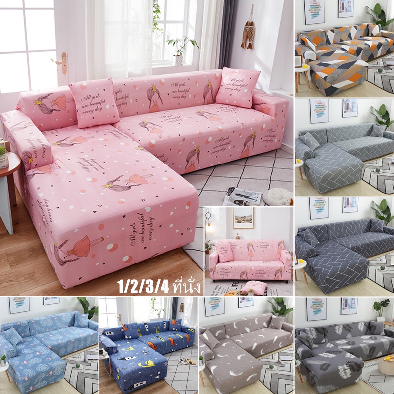 ⚡พร้อมส่ง⚡ผ้าคลุมโซฟา 1/2/3/4 ที่นั่ง ตัวแอล ยืดหยุ่น