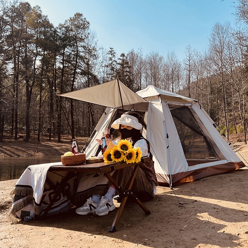 เต็นท์แคมป์ปิ้ง เต็นท์ เต็นท์สนาม เต็นท์นอน 4-5 คน ขนาด เต็นท์พักแรม เต้นท์เด็ก (ฟรีตะปูกราวด์+เสาพยุง+เชือก)