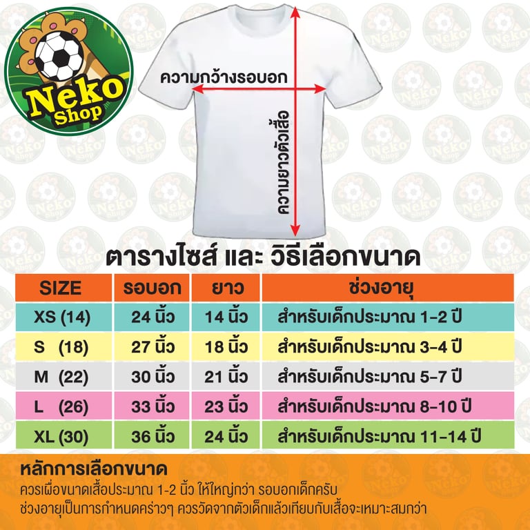 ... ่ะจะส่งวิธีวัดไปให้ค่ะ เก็บปลายทางได้ค่ะ ตารางไซส์ Size 14 รอบอก 24 นิ้ว ยาว 14 นิ้ว >> สำหรับเด็กประมาณ 1-2ปี Size 18 รอบอก 27 นิ้ว ยาว 18 นิ้ว >> สำหรับเด็กประมาณ 3-4ปี Size 22 รอบอก 30 นิ้ว ยาว 21 นิ้ว >> สำหรับเด็กประมาณ 5-7ปี Size 26 รอบอก 33 นิ้ว ยาว 23 นิ้ว >> สำหรับเด็กประมาณ 8-10ปี Size 30 รอบอก 36 นิ้ว ยาว 24 นิ้ว >> สำหรับเด็กประมาณ 11-14ปี
