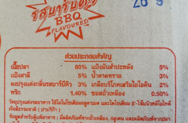 - ปลาเส้นทาโร่​ 500 กรัม - เนื้อปลา​ 80% - สินค้ามี​ อย. - ขนาดความยาว​ 25 cm. เส้นสวย​ (ไม่ใช่เศษปลาเส้น) - เส้นนิ่ม​ ไม่แข็ง - รับประทานเป็นของทานเล่น​ - ราคาประหยัด - สินค้าใหม่​ อร่อย​ อย่างดี​ ไม่ค้างสต็อค - รสชาติไม่เผ็ด - สินค้ามีอายุ​ 11 เดือน​ นับจากเดือนที่สั่งซื้อ - บริการขน