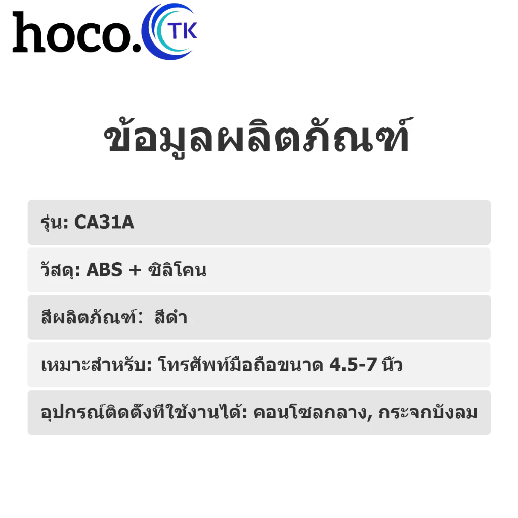 Hoco CA31A ที่ยึดมือถือในรถ ที่วางโทรศัพท์ ที่จับมือถือ ขาตั้งมือถือ ที่วางมือถือในรถ Phone Car Mount Holder ของแท้100%