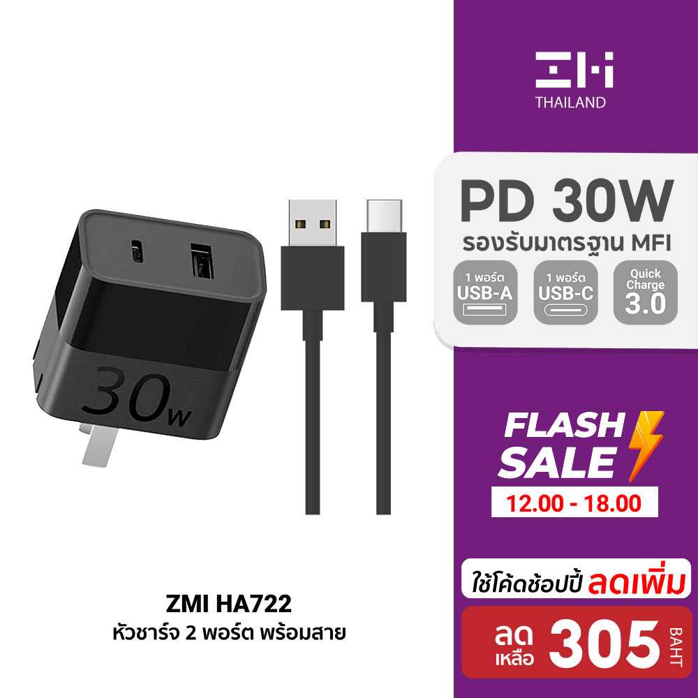 ... Pro 12.9 (รุ่นที่ 6 ), iPad Pro 12.9 (รุ่นที่ 5 ), iPad Pro 12.9 (รุ่นที่ 4) , iPad Pro 12.9 (รุ่นที่ 3) - ใช้สำหรับ iPad Pro 11.9 (รุ่นที่ 4) , iPad Pro 11.9 (รุ่นที่ 3), iPad Pro 11.9 (รุ่นที่ 2) , iPad Pro 11.9 (รุ่นที่ 1) - ใช้สำหรับ iPad Air (รุ่นที่ 5) , iPad Air (รุ่นที่ 4) - ใช้สำหรับ iPad (รุ่นที่ 10) - ใช้สำหรับ iPad mini (รุ่นที่ 6 ) - ใช้สำหรับ MacBook Air (15 นิ้ว, ชิป M2) , MacBook Air (13 นิ้ว,ชิป M2) , MacBook Air (M1) - ใช้สำหรับ MacBook Air (จอภาพ Retina,รุ่น 13 นิ้ว,2020) , MacBook Air (จอภาพ Retina,13 นิ้ว) - ใช้สำหรับ MacBook Pro (13 นิ้ว,M2) , MacBook Pro (13 นิ้ว,M1) , MacBook Pro (13 นิ้ว) - ใช้สำหรับ MacBook Pro (13 นิ้ว,) , MacBook Pro(14 นิ้ว) , MacBook Pro (รุ่น 14 นิ้ว) - ใช้สำหรับ MacBook Pro (16 นิ้ว) , MacBook Pro (16 นิ้ว) , MacBook Pro (16 นิ้ว) - ใช้สำหรับ MacBook Pro (15 นิ้ว) - ใช้สำหรับ Samsung S22 / S23 / S24 Series และอุปกรณ์อื่นๆ 1.) หัวชาร์จ ZMI HA722 พร้อมสาย USB-A to USB-C [[ สเปคสินค้า ]] ยี่ห้อ : ZMI ชื่อรุ่น : HA722 วัสดุ : พลาสติกคุณภาพสูง สี : ดำ กำลังไฟที่รับ (Input) : AC 100-240V ~ 1A(50/60Hz) กำลังไฟที่จ่าย (Output USB-A) : 5V/3A , 9V/3A , 12V/2.25A สูงสุด 27W กำลังไฟที่จ่าย (Output USB-C) : 5V/3A , 9V/3A , 12V/2.25A ,15V/2A สูงสุด 30W กำลังไฟสูงสุด : 30 วัตต์ เทคโนโลยีที่รองรับ : PD 3.0 / QC 3.0 ประเภทช่องชาร์จ : USB-A / Type-C ขนาดของสินค้า : 4.8 × 2.8 × 4.7 เซนติเมตร น้ำหนักของสินค้า : 65 กรัม [[ อุปกรณ์ภายในกล่อง ]] (x1) ZMI HA722 (x1) สาย USB-A to USB-C (x1) คู่มือ ----------------------------------------------- 2.) ZMI HA832 หัวชาร์จ 3 พอร์ต ใช้งานรวม 65W [[ จุดเด่นสินค้า ]] - 3 พอร์ต USB-C 45W + USB-A เฉลี่ยกัน 18W * 1 USB-C 45W เทคโนโลยี Power Delivery (PD) * สำหรับอุปกรณ์ iPhone , iPad และอื่นๆ * สำหรับ iPhone 14 Pro Max เต็ม 0-100% ใน 1 ชม. 35 น. * สำหรับ iPad Pro 12.9" เต็ม 0-100% ใน 2 ชม. 2 น. * 2 USB-A 20W เทคโนโลยี Quick Charge (QC3.0) * สำหรับมือถือ Snapdragon และอุปกรณ์ขนาดเล็ก - ออกแบบแผงวงจรด้านในใหม่ และเพิ่มความปลอดภัยมากขึ้น - ระบบปรับเปลี่ยนกระแสไฟฟ้าตามอุปกรณ์ที่ชาร์จ * ช่วยถนอมแบตเตอรี่ ยืดอายุการใช้งานให้ยาวนานขึ้น - รองรับกระแสไฟ 100 - 240V ครอบคลุมการใช้งานได้ทั่วโลก - ขนาดเล็ก พับขาได้ พกใส่กระเป๋าใช้งานได้ทุกสถานที่ [[ ข้อมูลสินค้า ]] แบรนด์ : ZMI รุ่น : ZMI HA832 พอร์ตชาร์จ : 1 USB-C , 2 USB-A Input : 100-240V~50/60Hz 1.6A Output : USB-C 5V𝌂3A , 9V𝌂3A , 12V𝌂3A , 15V𝌂3A , 20V𝌂2.25A 45W Max USB-A 5V𝌂3A , 9V𝌂2.2A , 12V𝌂1.7A USB-A ใช้พร้อมกัน 2 พอร์ตเฉลี่ยไฟ 5V𝌂3.6A ขนาดสินค้า : 66.9 x 61 x 28.4 มิลลิเมตร น้ำหนักสินค้า : 150 กรัม [[ อุปกรณ์ภายในกล่อง ]] 1x ZMI HA832 1x สายชาร์จ Type-C to Type-C 1x คู่มือการใช้งาน