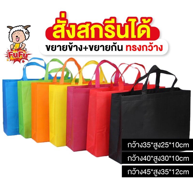 ⚡️FU FUถุงผ้า กู้โลก⚡️ขยายก้น+ขยายข้าง(ทรงกว้าง) ถุงผ้าสปันบอนด์ ซีลรีดความร้อนสายหิ้ว ของขวัญ ถุงผ้าสปัน ถุงรักษ์โลก