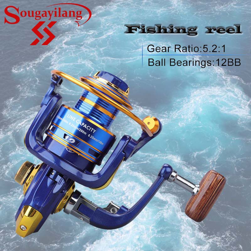 Sougayilang รอกตกปลา แบบหมุน อัตราทดเกียร์ 5.2: 1 ความเร็วสูง ลูกปืน 12BB สำหรับเบ็ดตกปลารอกสปินนิ่ง