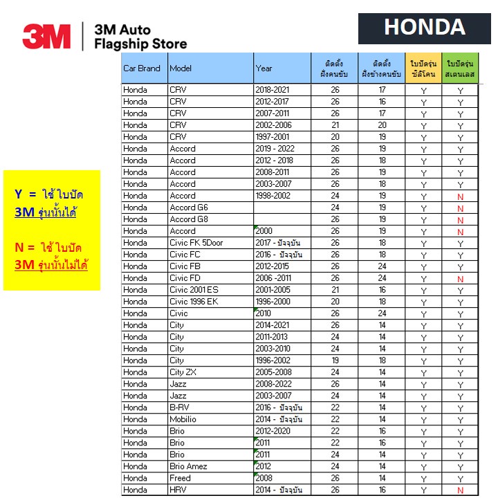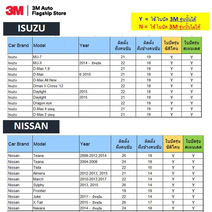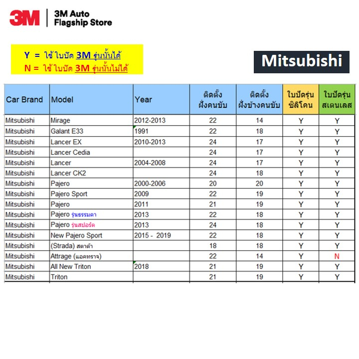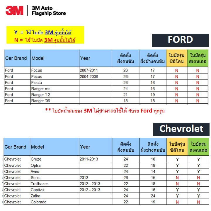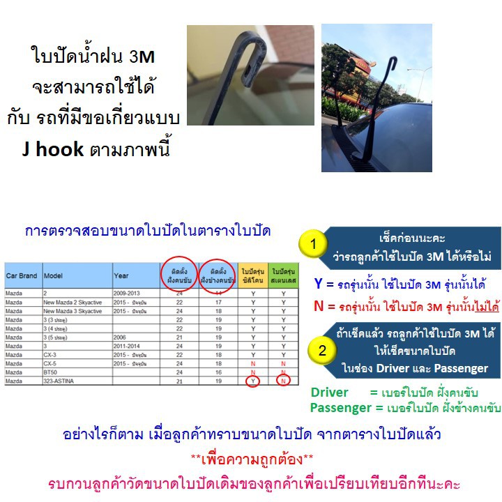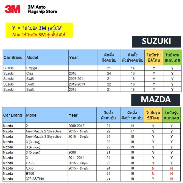 ... ตารางที่ร้านค้าแนะนำ เป็นขนาดใบปัดที่ค่ายรถส่วนใหญ่แนะนำ ทั้งนี้เพื่อความถูกต้อง และเพื่อลูกค้าจะได้ใช้ใบปัดน้ำฝนใกล้เคียงกับของเดิม รบกวนลูกค้าวัดขนาดใบปัดน้ำฝนเดิมเปรียบเทียบอีกทีนะคะ ❌ใบปัดน้ำฝนของ 3M *ไม่มี❗️ใบปัดด้านหลังจำหน่ายนะคะ ❌ ใบปัดน้ำฝนของ 3M *ไม่สามารถใช้ได้❗️ กับยุโรป และอเมริกา เช่น รถฟอร์ด, เชฟโรเลต(บางรุ่น), เบนซ์ และ BMW 📌 หากลูกค้าไม่มั่นใจ ว่าใบปัดน้ำฝนของ 3M สามารถใช้กับรถของลูกค้าได้หรือไม่ ลูกค้าสามารถสอบถามเจ้าหน้าที่ทางแชทได้เลยค่ะ 🎉>> การกดสั่งซื้อ หากลูกค้าต้องการสั่งซื้อใบปัด 2 เบอร์ขึ้นไป ให้ลูกค้ากดเลือกเบอร์ใบปัด กดจำนวน ที่ต้องการสั่งซื้อ กดเพิ่มเข้าในรถเข็นไปก่อนนะคะ จากนั้นค่อยกดสั่งซื้อ และชำระเงินค่ะ เบอรใบปัดที่ลูกค้าเลือกจะได้อยู่ในคำสั่งซื้อเดียวกันค่ะ 🎉คุณสมบัติ: - ใบปัดน้ำฝน 3เอ็ม รุ่นซิลิโคน Frameless ออกแบบด้วยความแม่นยำ โค้งรับแนบสนิทกับรถของคุณ มีคลิปสำหรับล๊อค ติดตั้งง่ายบนกระจกหน้ารถของคุณ - ออกแบบตามหลักพลศาสตร์ ด้วยนวัตกรรมล่าสุดช่วยเพิ่มประสิทธิภาพในการทำความสะอาดกระจกหน้ารถของคุณ ใบปัดโค้งพอดีกับรูปร่างตามธรรมชาติของกระจกรถยนต์ของคุณเพื่อให้มีการใช้แรงกดตามความยาวของใบมีด น้ำเศษและแมลงจะถูกปัดได้อย่างมีประสิทธิภาพ - เพรียวบางและใช้งานง่ายด้วยเทคโนโลยีล่าสุดใบปัดน้ำฝนเหล่านี้จะทำความสะอาดกระจกรถยนต์โดยไม่ทิ้งรอยขีดข่วนหรือทำให้เสียหาย **ใบปัดน้ำฝนรุ่น frameless นี้มีซิลิโคนคุณภาพสูงซึ่งอ่อนโยนต่อกระจกหน้า ใบปัดน้ำฝน 3M ทนทานต่อรังสี UV และทนความร้อน สามารถทนต่อสภาพอากาศที่รุนแรง ใบปัดน้ำฝนคุณภาพสูงถูกบรรจุไว้ในกล่องพลาสติกเพื่อยืดอายุการเก็บรักษา ควรเปลี่ยนใบปัดน้ำฝนใช้เป็นประจำทุกปีเพื่อช่วยให้ทัศนวิสัยดีในการขับขี่ของคุณ 🎉**วิธีการดูแลรักษาใบปัดน้ำฝน รักษาใบปัดน้ำฝนโดยการทำความสะอาดเบา ๆ เมื่อคุณล้างรถ เพื่อเอาเศษฝุ่นตามใบปัดน้ำฝนซึ่งอาจขูดกระจกรถของคุณเมื่อใช้งาน **มีขนาดให้เลือกตั้งแต่ความยาว 14″,16″17",18"19",20",21"22",24",26″ นิ้ว ค่ะ ** ลูกค้าสามารถดูขนาดใบปัดตามตารางเทียบกับรุ่นรถที่แนบมาได้เลยนะคะ