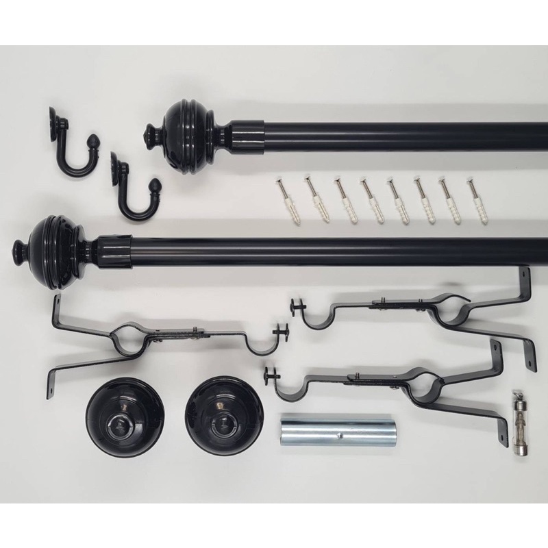 อุปกรณ์ราวผ้าม่าน 1 ชุด ประกอบด้วย ***ขายึดราวผ้าม่าน 2 ชิ้น สำหรับขนาดความยาว 1.20 เมตร , 1.50 เมตรและ 1.80 เมตร*** ...ขายึดราวผ้าม่าน 3 ชิ้น สำหรับขนาด2.00-4.00 เมตร โดยความยาวที่มีมากกว่า2.00 เมตรราวจะถูกแบ่งครึ่ง(เนื่องจากขนส่งให้ส่ง ได้ที่สูงสุด2.00เมตร) และในชุดที่แบ่งครึ่งจะมีข้อต่อกลา