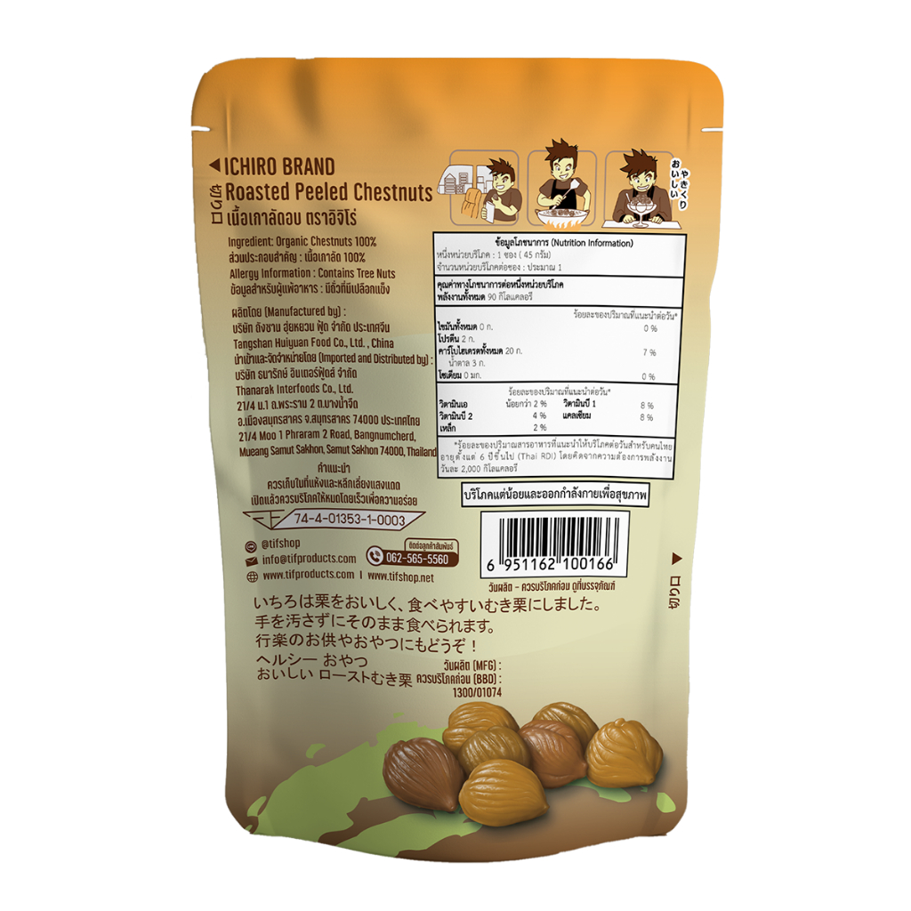 ... นจันทร์ - เสาร์ (หยุดทุกวันอาทิตย์) ⏰ ตัดรอบเวลา 08.00 ของทุกวัน หากซื้อสินค้าหลัง เวลา 08.00 น. จะถูกจัดส่งวันถัดไป (หยุดทุกวันอาทิตย์) 🚚 จัดส่งใช้เวลา 2 - 4 วัน (ไม่รวมวันที่สั่งซื้อ) #เกาลัด #อิจิโร่ #ICHIRO #TIFshop