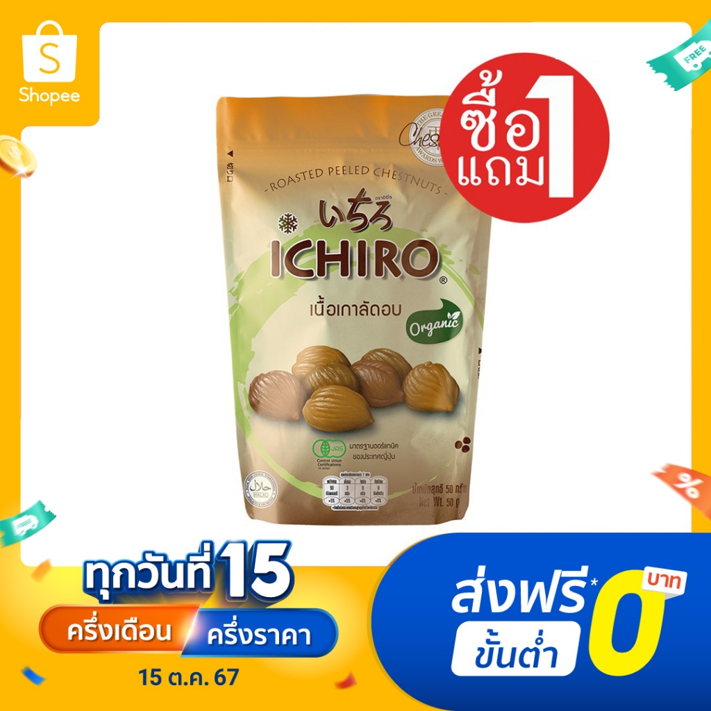 [ซื้อ1แถม1] ICHIRO อิจิโร่ เนื้อเกาลัด 50 กรัม WHOLE ROASTED PEELED CHESTNUTS