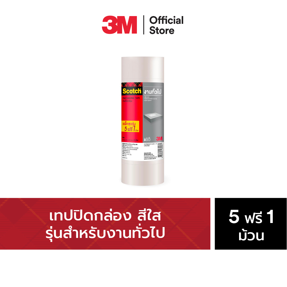 3M™ Scotch® สก๊อตช์ เทปปิดกล่อง, รุ่น 5 ฟรี 1, ขนาด 48 มม. x 40 ม., สีใส