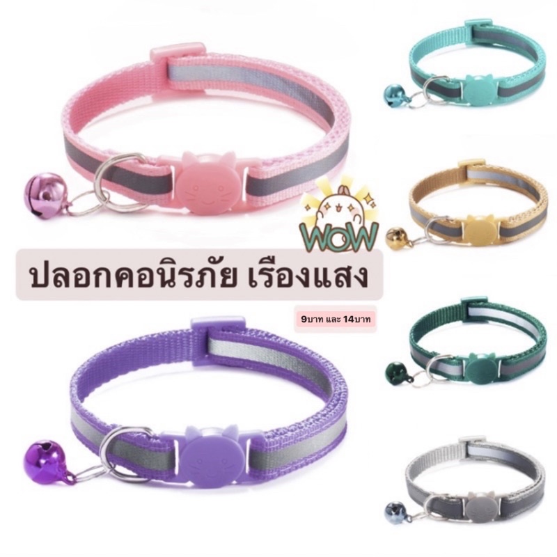 ปลอกคอนิรภัยแมว มีแถบสะท้อนแสง มี18สี