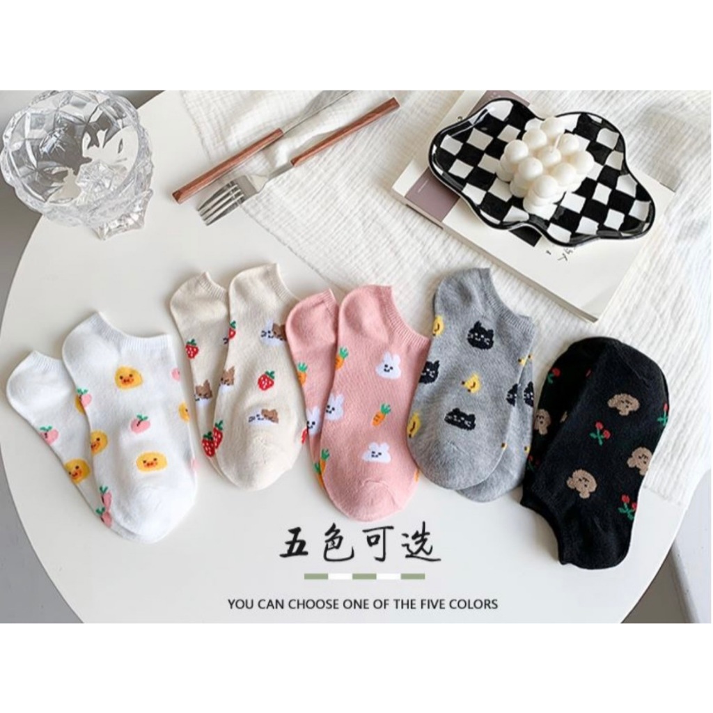 ✔️พร้อมส่ง ถุงเท้าข้อสั้น ลาย Mix Animal 5 สี สไตล์เกาหลี (1 เซต มี 5 คู่)