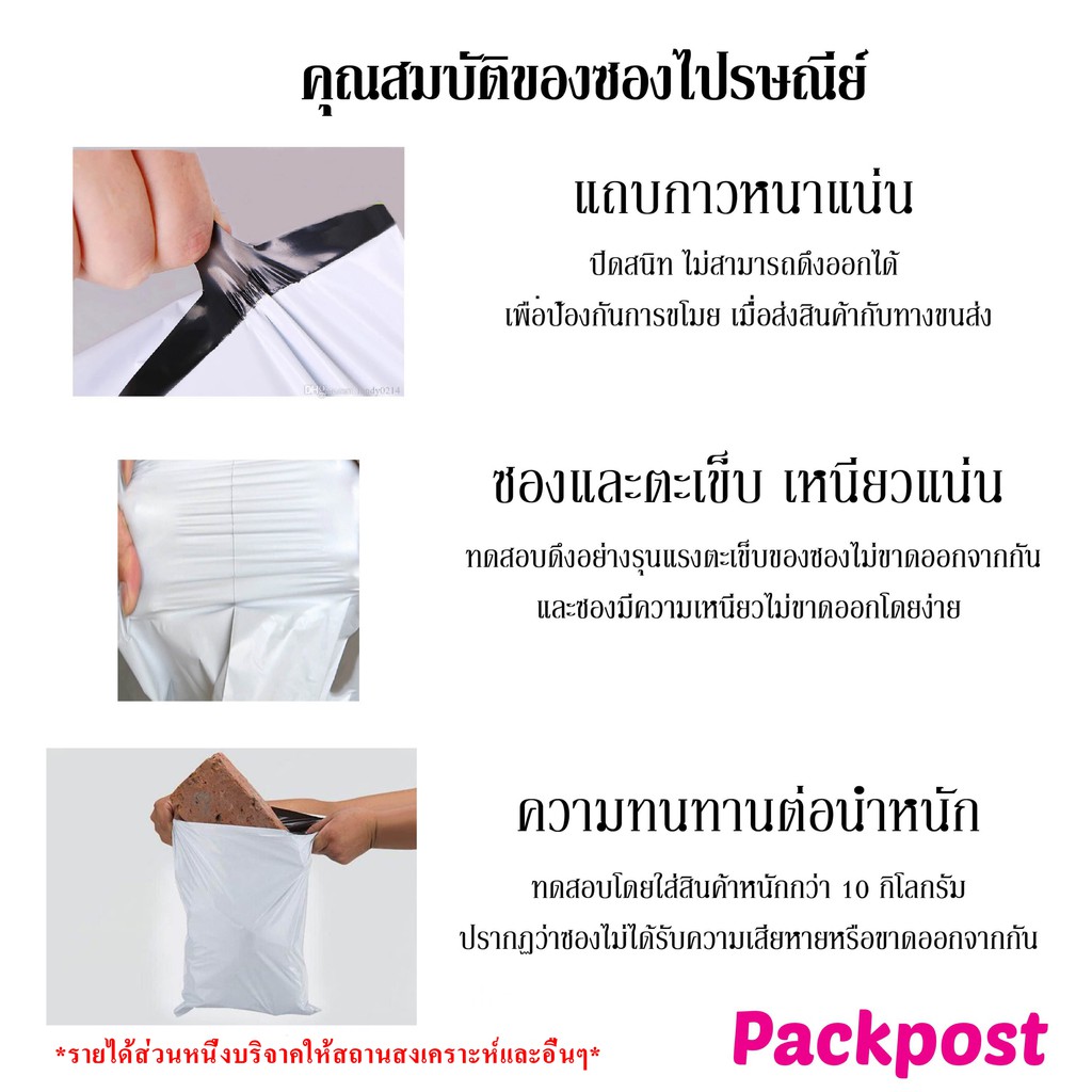 ... นทาน ไม่ขาดง่าย ใส่สินค้าหนักได้ไม่ต้องห่วง • ซองไปรษณีย์พลาสติกมาพร้อมแถบกาวเหนียวติดทนถาวร • ผิวซองง่ายต่อการเขียนที่อยู่และติดทนนาน • ทางเราผลิตเองและมีสินค้าสต๊อกพร้อมส่งในไทย *** ต้องการราคาส่ง inbox มาหาทางเราได้เลยคับ เรามีราคาพิเศษให้ สามารถนำไปขายต่อได้สบายมากครับ *** ****ข้อมูลระยะเวลาการขนส่งโดยประมาณ สำหรับการตัดสินใจเลือกบริษัทขนส่ง**** *Shopee express* กรุงเทพฯและปริมณฑล 3-5 วัน จังหวัดอื่นๆ 3-7 วัน *Ninja Van* กรุงเทพฯและปริมณฑล 3-5 วัน จังหวัดอื่นๆ 3-7 วัน *DHL* กรุงเทพฯและปริมณฑล 3-7 วัน จังหวัดอื่นๆ 3-7 วัน หมายเหตุ • 1 order สั่งได้ไม่จำกัดจำนวน ค่าส่งระบบจะคำนวณให้อัตโนมัติตามน้ำหนัก • สั่งแล้วไม่สามารถเปลี่ยนที่อยู่ได้ ถ้าลูกค้าสั่งผิดกรุณายกเลิกการแล้วสั่งใหม่นะคับ • ลูกค้ากดสั่งสินค้าและชำระเงินก่อน 24.00 น. ส่งสินค้าวันถัดไปคับ (หยุดวันอาทิตย์และวันหยุดเทศกาล) • รายได้ส่วนหนึ่งบริจาคให้สถานสงเคราะห์และอื่นๆ • สินค้าอาจมีปริมาณ +-5 ใบ เนื่องจากทางเราใช้วิธีการชั่งน้ำหนักในการจัดสินค้า **ขอบพระคุณลูกค้าที่น่ารักและให้ความไว้วางใจซองไปรษณีย์แพคโพสครับ**