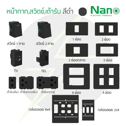 สวิตช์ไฟ เต้ารับ หน้ากาก ฝาครอบ รุ่นใหม่ สีดำ ปลั๊ก เต้ารับ แท้ NANO 💯