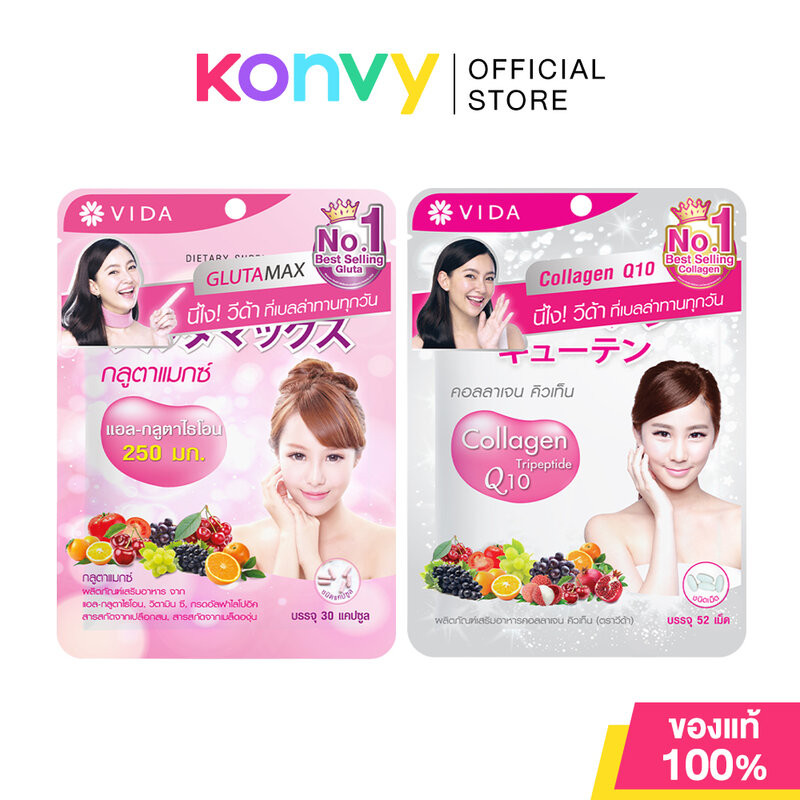 Vida Supplements วีด้า ผลิตภัณฑ์เสริมอาหาร (L-Glutathione 30 Capsules/Collagen Q10 52 Tablets)