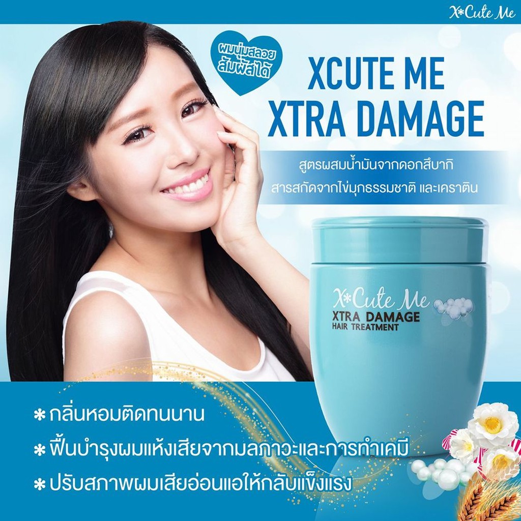 ... นได้ชัด 💥เอ็กซ์คิวท์ มี เอ็กซ์ตร้า มอยส์ แฮร์ ทรีทเม้นท์ (Xtra Moist) 450 มล. ทรีทเม้นท์บำรุงผมผสมน้ำมันจากดอกสึบากิและไฮยาลูรอน กลิ่นหอมติดทนนาน 👉เพิ่มความชุ่มชื้นให้เส้นผมและหนังศีรษะ 👉ฟื้นบำรุงผมอ่อนแอ ให้กลับแข็งแรงจากภายในสู่ภายนอกปรับสภาพผมแห้งเสีย ชี้ฟู ให้มีน้ำหนัก จัดทรงสวย พริ้วไหวเป็นธรรมชาติ 💥เอ็กซ์คิวท์ มี เอ็กซ์ตร้า ดาเมจ แฮร์ ทรีทเม้นท์ (Xtra Damage) 450 มล. ทรีทเม้นท์บำรุงผมสูตรผสมน้ำมันจากดอกสึบากิ สารสกัดจากไข่มุกธรรมชาติ และเคราติน กลิ่นหอมติดทนนาน 👉ฟื้นบำรุงผมแห้งเสียจากมลภาวะและการทำเคมีต่างๆ ทั้งการยืด การดัด และย้อมสี 👉ปรับสภาพผมเสียอ่อนแอให้กลับแข็งแรง นุ่มสลวย เงางาม มีน้ำหนักอย่างเป็นธรรมชาติ 💥เอ็กซ์คิวท์ มี เอ็กซ์ตร้า วอลุ่ม แอนด์ ซิลกี้ แฮร์ ทรีทเม้นท์ (Xtra Volume & Silky) 450 มล. ทรีทเม้นท์บำรุงผมสูตรผสมน้ำมันจากดอกสึบากิและโปรตีนข้าวสาลี กลิ่นหอมติดทนนาน 👉แก้ปัญหาและป้องกันผมขาดร่วงจากหลากหลายปัจจัย 👉ฟื้นบำรุงโครงสร้างเส้นผมที่อ่อนแอจากภายใน รากผมแข็งแรง ผมยาวเร็วขึ้น เส้นผมมีน้ำหนัก มีสุขภาพดีราวกับผมเกิดใหม่ 💦วิธีการใช้งาน หลังทำความสะอาดเส้นผม ชโลมทรีทเม้นท์ลงบนเส้นผม ตามความยาวเส้นผม ทิ้งไว้ 5-10 นาที จากนั้นล้างน้ำออกให้สะอาด 🌟ปริมาณสุทธิ 450 มิลลิลิตร