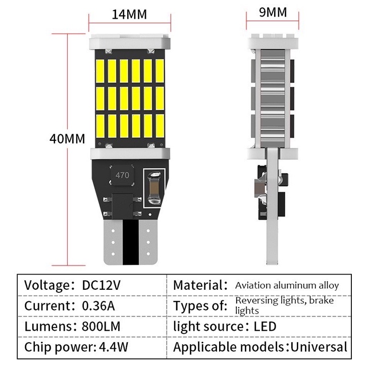 ไฟหรี่ ไฟถอยLED ขั้วT10/T15 45SMD (ราคา 1 หลอด) 12V ไฟส่องป้ายทะเบียน สว่างมาก ทนความร้อนได้ดี