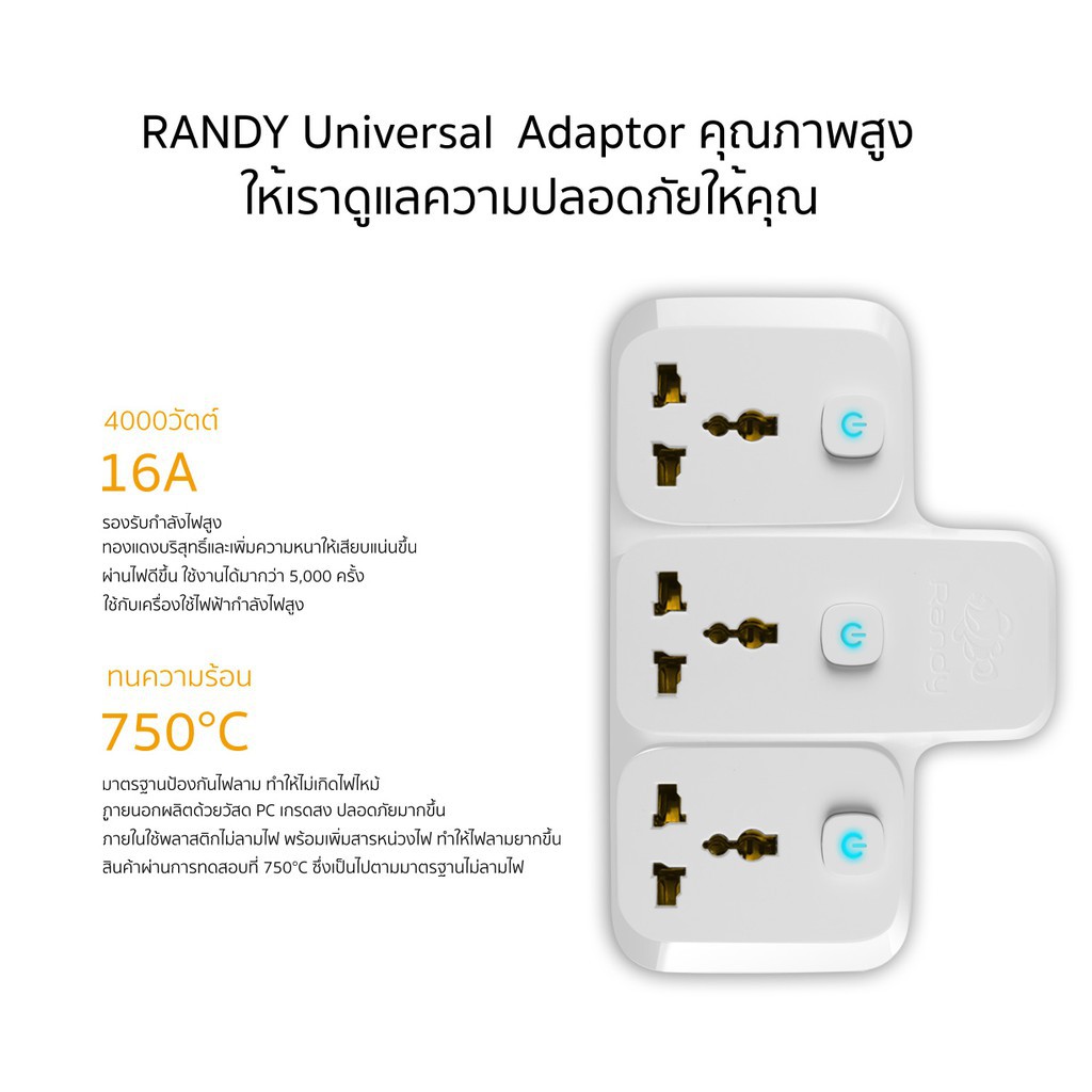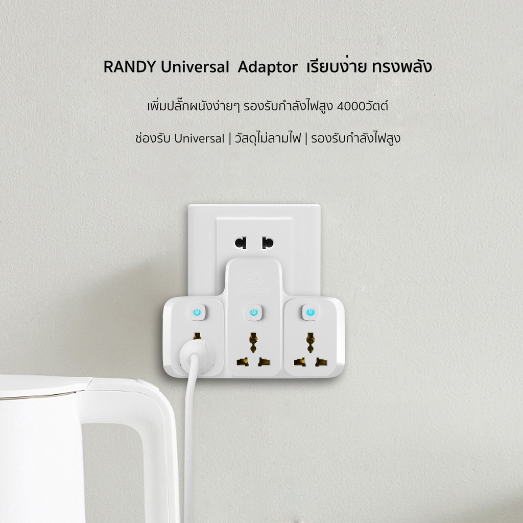 ... ่น รองรับเครื่องใช้ไฟฟ้ากำลังไฟสูง เช่น ⭐Randy ตัวแปลงไฟ X33U 2ช่อง2สวิตซ์ (2USB 2.1Aชาร์จเร็ว)16A 4000W ไม่ลามไฟ การออกแบบสวิตช์ใหม่พิเศษ สีสันสวยงามและแปลกใหม่ แก้ปัญหาสวิทช์ผนังไม่เพียงพอ ที่วางสกรูดีไซน์ดั้งเดิม ไม่ล้มง่าย เสียบให้แน่น รองรับเครื่องใช้ไฟฟ้ากำลังไฟสูง เช่น ❗ ผลิตภัณฑ์นี้ทำจากวัสดุทนไฟทั้งหมด ความปลอดภัย ❗ ⭐สำหรับใช้ร้านค้า และอุปกรณ์ช่าง ⭐เตาบาบีคิว ⭐หม้อสุกี้ไฟฟ้า ⭐เตารีดไอน้ำ ⭐เตาอบ ⭐เครื่องปั่นกำลังแรงสูง ⭐เครื่องมือช่างต่างๆ ⭐รับประกัน 2 ปี ⭐ ประกันอุบัติเหตุที่เกิดจากปลั๊กพ่วง รับประกันโดย AIG ประกันภัย รับประกันความปลอดภัย ⭐ออกแบบในประเทศเยอรมนี ใช้เทคโนโลยีล้ำสมัยผลิตทองแดงบริสุทธิ100% เพื่อให้สินค้ารองรับกำลังไฟสูง ⭐ใช้กับ เครื่องใช้ไฟ เตาอบ เตาไฟฟ้า หม้อสุกี้ ไมโครเวฟ กระทะไฟฟ้า เตารีด เครื่องปั่นน้ำผลไม้ อุปกรณ์ช่าง ⭐รองรับกำลังไฟ X01A 3680W 16A ปลั๊กแปลง 2 ขา ประเทศและภูมิภาคใช้ CHINA Thailand United States Canada Japan Brazil Philippines CHINA-Taiwan ⭐รองรับกำลังไฟ X01E 4000W 16A ปลั๊กแปลง 3ขา ประเทศและภูมิภาคใช้ HongKong Macao UnitedKingdom India Pakistan Singapore Malaysia Vietnam Indonesia Maldives Qatar ⭐รองรับกำลังไฟ X01G 4000W 16A 2 ขากลม ประเทศที่ใช้ Thailand South Korea Russia Germany France Netherlands Denmark Finland Norway Poland Portugal Austria Belgium Hungary Spain Sweden ⭐ตัวแปลงไฟ X33A 3ช่อง3สวิตซ์16A 4000W ⭐ตัวแปลงไฟ X1216A 2ช่อง1สวิตซ์16A 4000W ซีรี่ส์ X การออกแบบใหม่ของ RANDY ช่วยแก้ปัญหา 4 ประการ 1. ปลั๊กกลม 3 อันแข็งแรงกว่า เมื่อเจอเต้ารับติดผนังแบบเก่าที่มีปลั๊กแบน 2 อันเพียงหมุนปลั๊กกลมเพื่อถอดออกเท่านั้นก็สามารถเสียบปลั๊กแบน 2 อันเข้ากับเต้ารับติดผนังแบบเก่าได้ 2. แก้ปัญหาการใช้เต้ารับต่อขยายในพื้นที่แคบโดยไม่ต้องใช้เต้ารับติดผนังข้างบ้าน RANDY ออกแบบเต้ารับต่อขยายแบบหมุนได้ซึ่งสามารถเสียบได้หลังจากหมุนเพื่อแก้ปัญหา 3.พลังงานสูงสามารถใช้กับเครื่องใช้ไฟฟ้าได้จำนวนมากโดยไม่โหลดเกิน รองรับได้ถึง 4000W และผลิตภัณฑ์ทำจากวัสดุไม่ลามไฟซึ่งมีความปลอดภัยและจะไม่ติดไฟ 4. ปลั๊กไฟที่บ้านมีไม่เพียงพอ RANDY X1216A เพียงอันเดียวเท่านั้นที่สามารถแก้ปัญหาทั้งหมดได้ ไม่จำเป็นต้องติดตั้งเต้ารับติดผนังเพิ่มเติมซึ่งเป็นอันตรายและยุ่งยาก RANDY มีรูปแบบเต้ารับสูงสุด 2 แบบเพื่อแก้ปัญหาความต้องการไฟฟ้าของผู้ใช้ ⭐ตัวแปลงไฟ X1416A 4ช่อง1สวิตซ์16A 4000W ซีรี่ส์ X การออกแบบใหม่ของ RANDY ช่วยแก้ปัญหา 5 ประการ 1. ปลั๊กกลม 3 อันแข็งแรงกว่า เมื่อเจอเต้ารับติดผนังแบบเก่าที่มีปลั๊กแบน 2 อันเพียงหมุนปลั๊กกลมเพื่อถอดออกเท่านั้นก็สามารถเสียบปลั๊กแบน 2 อันเข้ากับเต้ารับติดผนังแบบเก่าได้ 2. แก้ปัญหาการใช้เต้ารับต่อขยายในพื้นที่แคบโดยไม่ต้องใช้เต้ารับติดผ