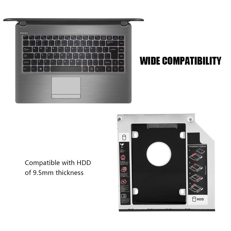 ถาดแปลงใส่HDD/SSD ในช่องDVD/CD Notebook 9.0mm/9.5mm/12.7mm Universal SATA 2nd HDD SSD Hard Drive Caddy