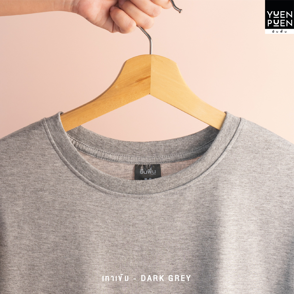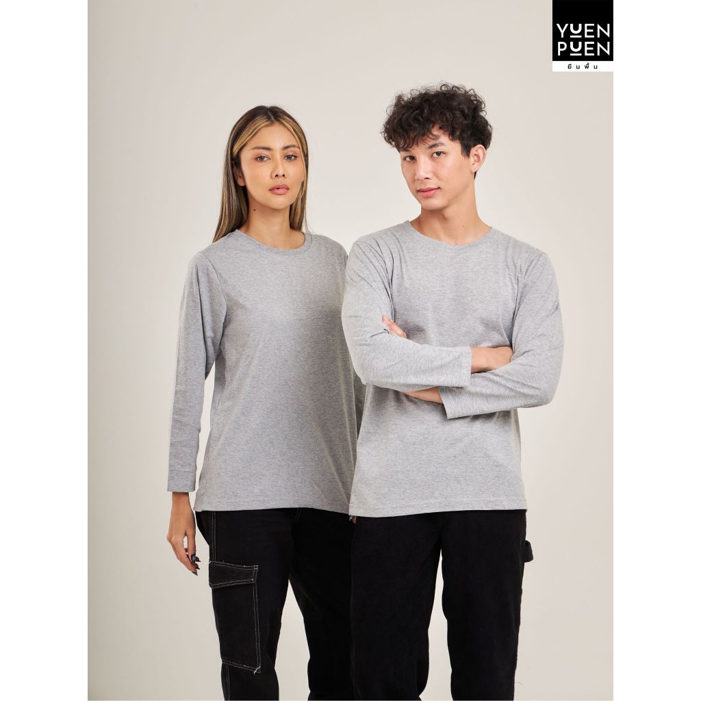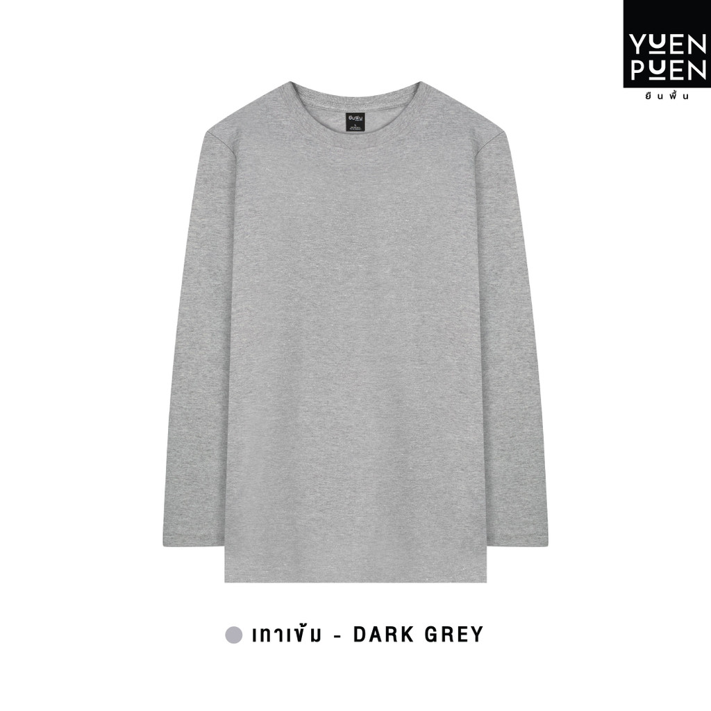 <ใส่โค้ด YUEOCT30 ลด15%>YuenPuen เสื้อยืดคอกลมแขนยาว สีเทาเข้ม ยืนพื้น ไม่ยืด ไม่ย้วย ไม่ต้องรีด สีพื้น เนื้อผ้านุ่ม