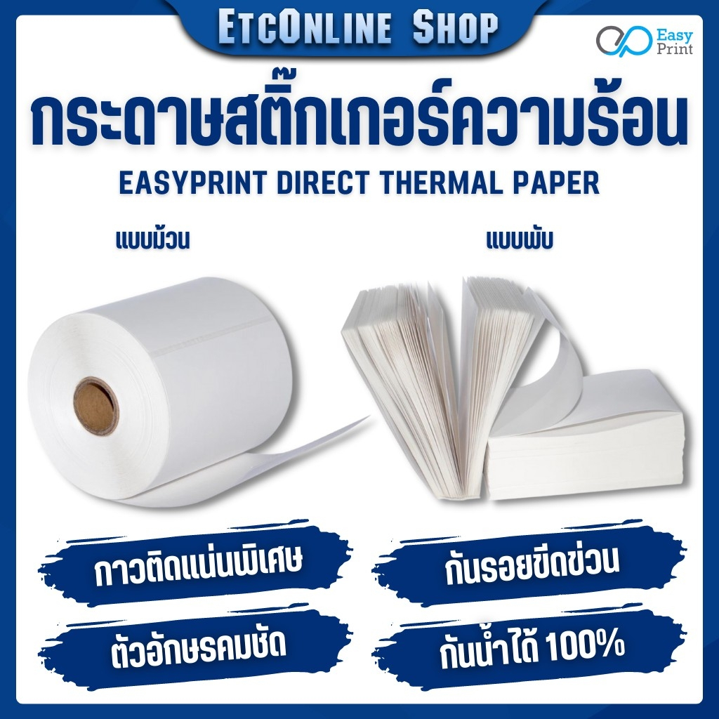 EasyPrint กระดาษความร้อน สติ๊กเกอร์บาร์โค้ดไม่ใช้หมึกพิม ใบปะหน้าขนาด 100*180 100*150 100*100 100*75