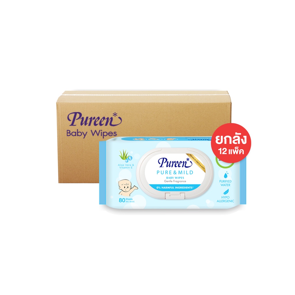 เพียวรีนเบบี้ไวพส์ สูตรเพียวแอนด์มายด์ 80 แผ่น (ลังละ 12 ห่อ)