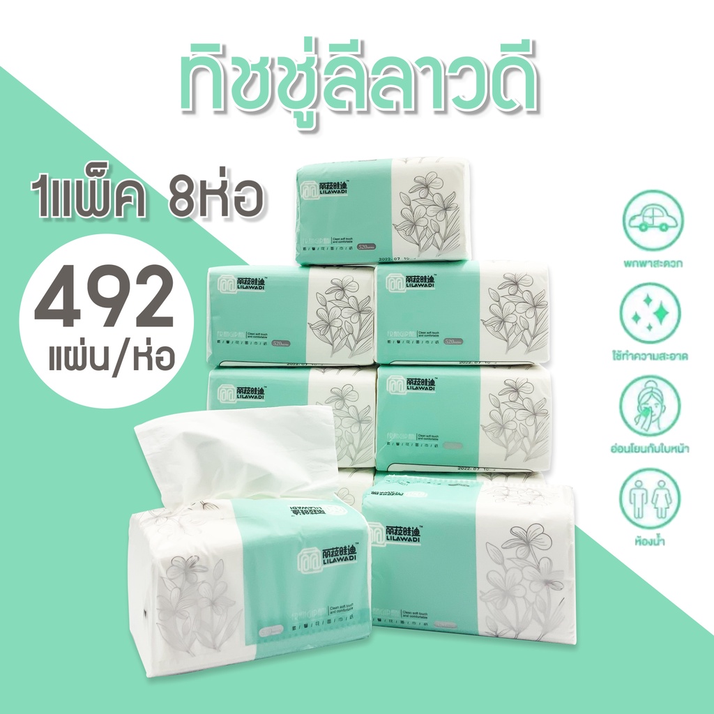 <พร้อมส่ง> กระดาษทิชชู่ 1แพ็ค มี 8ห่อ กระดาษทิชชู่ 1ห่อ มี 492แผ่น หนา 3 ชั้น เนื้อเยื่อกระดาษแท้ ไม่ฟอกสี